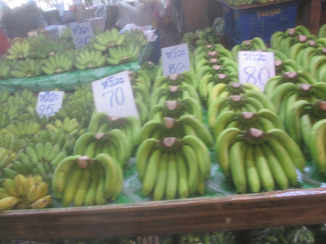 クロントゥーイ市場でバナナを大量に売っているお店を見かけました。日本で見かける黄色ではなく、まだ、とれ立ての青い色をしていました。こんなに大量にあっても、ほとんど売れ残りがないようです。大量買い付けのお客さんがいるようです。