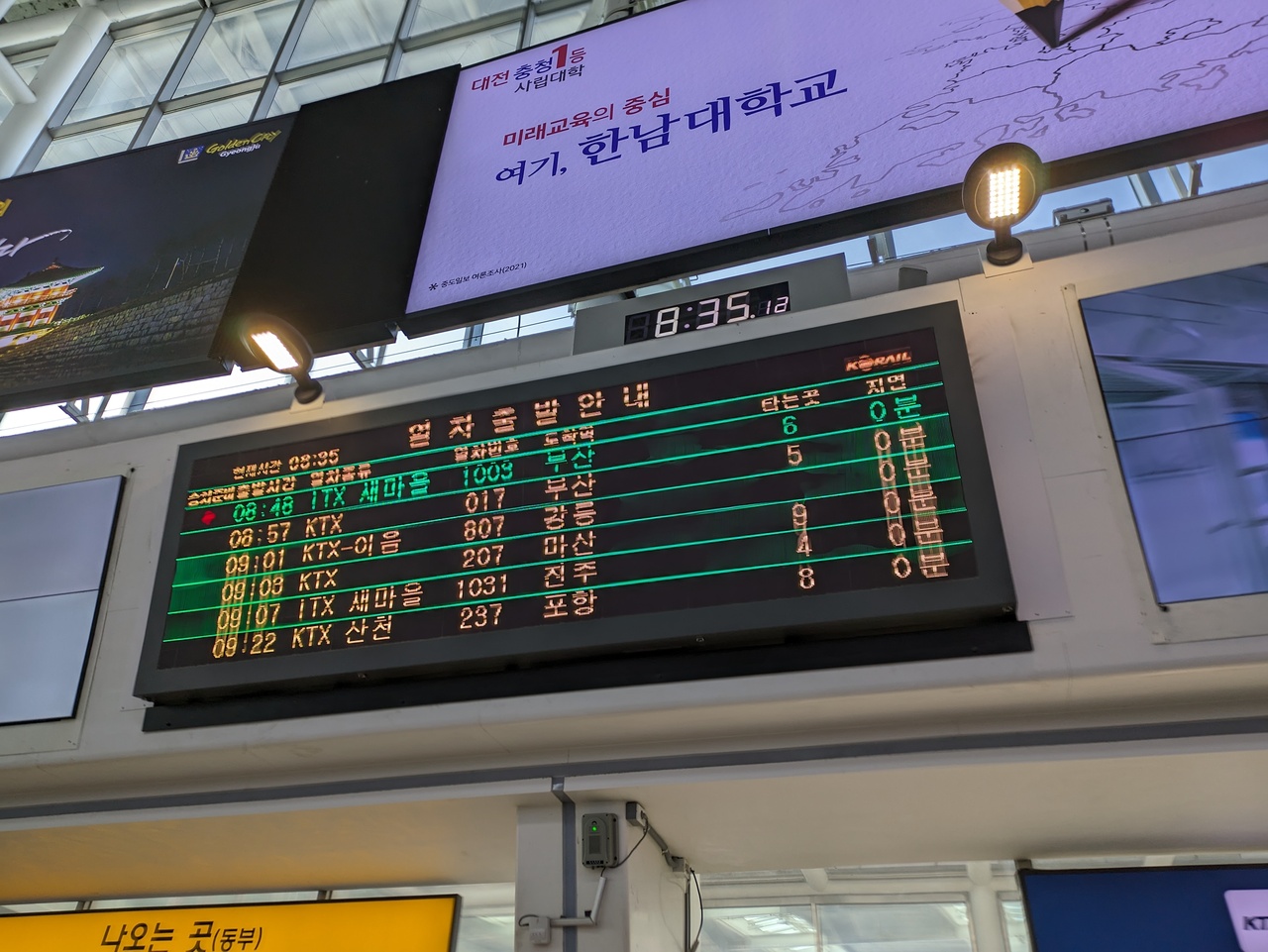釜山や江陵に向かう長距離列車の始発駅とあって駅構内にはお弁当(?)を売る店がたくさんあります。