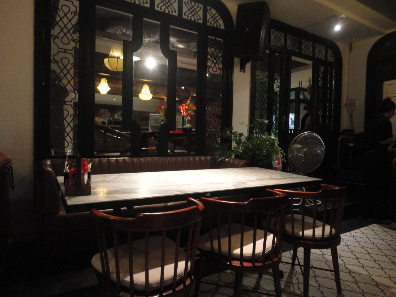 ホアンキエム湖に面したドンキンギアトゥック広場に建つ目立つビルです。各フロアにレストランが入っていましたが、こちらのお店は階段を上がってすぐの2階のお店です。冷房の効いた屋内のスペースと、広場を見下ろせるバルコニーのスペースがありました。