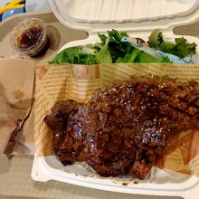 ロイヤルハワイアンセンターのB2階にあるフードコート、パイナラナイにあるステーキの店。店頭カウンターにある端末でオーダーします。付け合わせや焼き加減を選び、出てきたレシートをレジに持って行きます。ボリュームたっぷりな肉とオニオンベースのステーキソースがばっちり合って美味しい。プラスチックのナイフでは切りにくかったので、あらかじめ切っておいてくれればなお良かった。