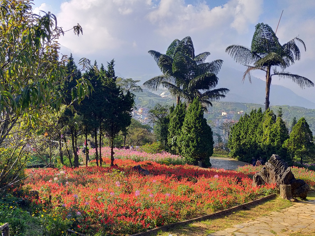 サパを見おろす展望台があります。丘自体は岩肌をくぐって散策したり、フラワーガ一デンがあったりして、結構広い公園になっていました。外国人には展望台だけで十分ですが入園料がいります。下から階段を上ると、チケット売り場があります。結構疲れます。