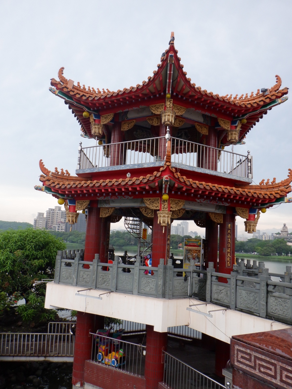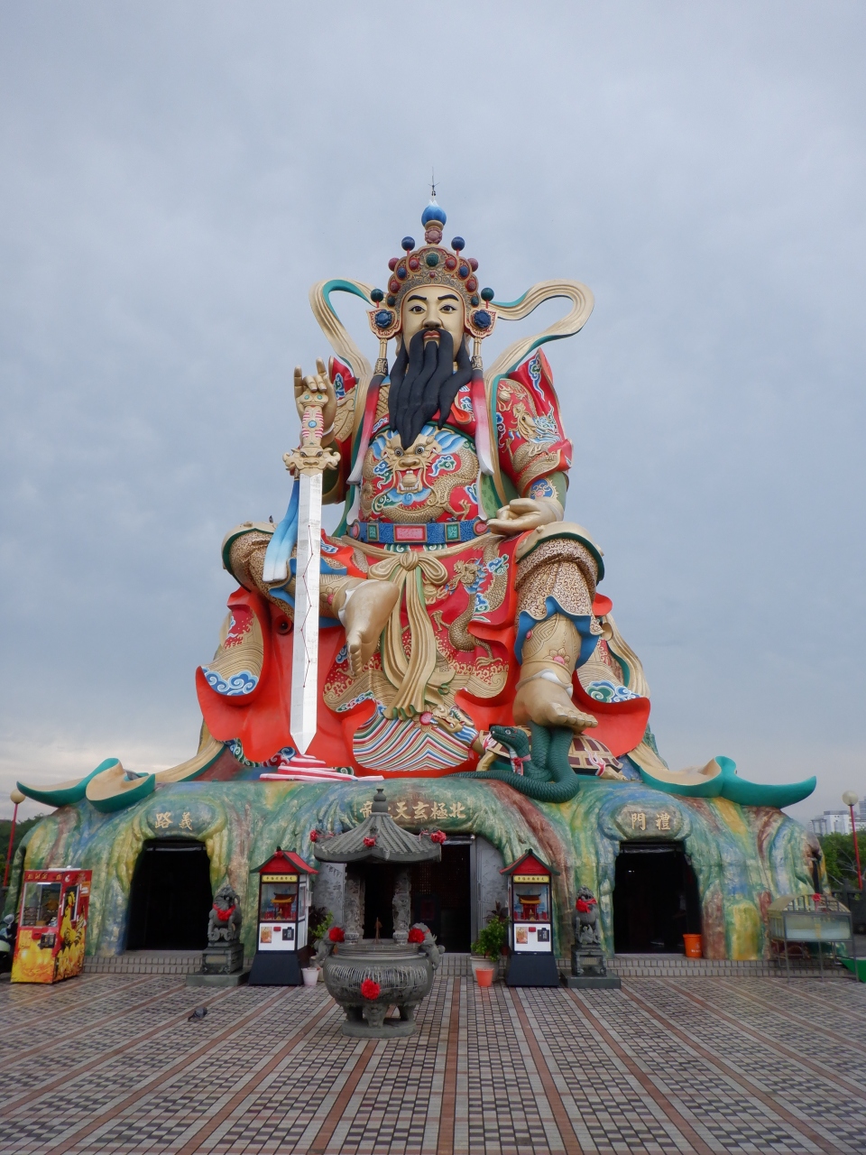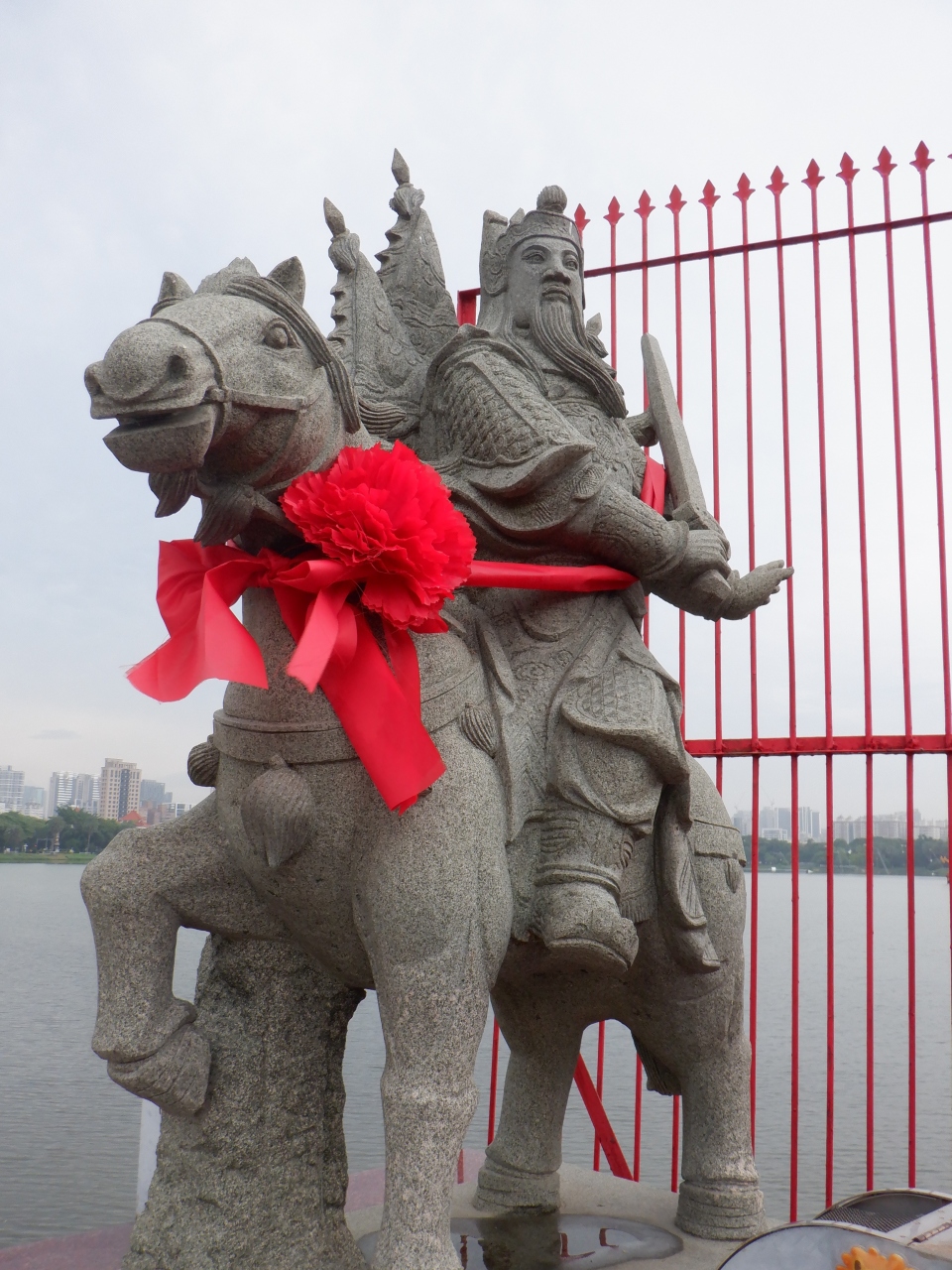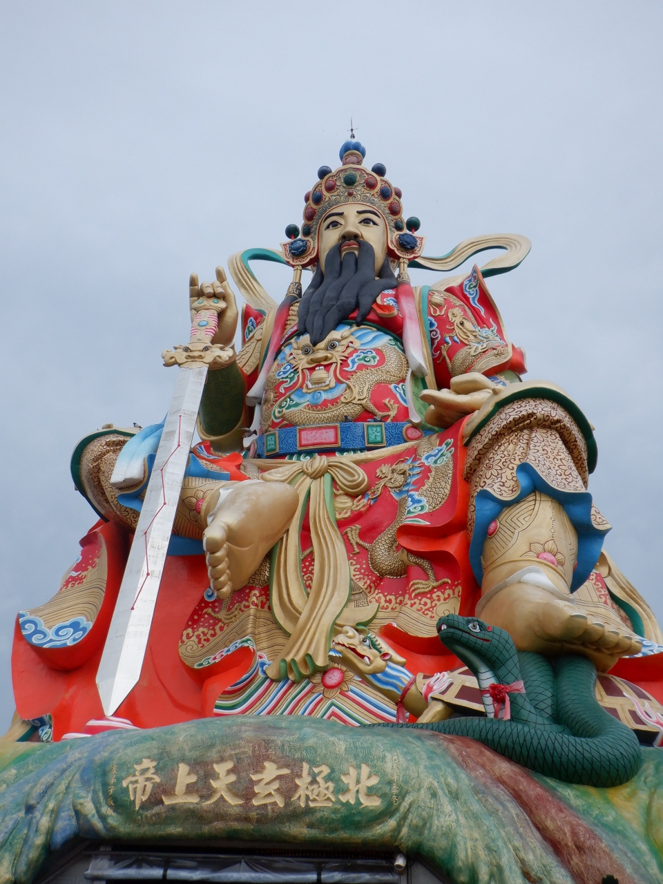 蓮池譚には様々な像がありますが、その中で一番目立っているように思います。湖に向かっている長い通路(橋)を通って行った向こうに大きな北極帝の像があり、中にも入ることができます。