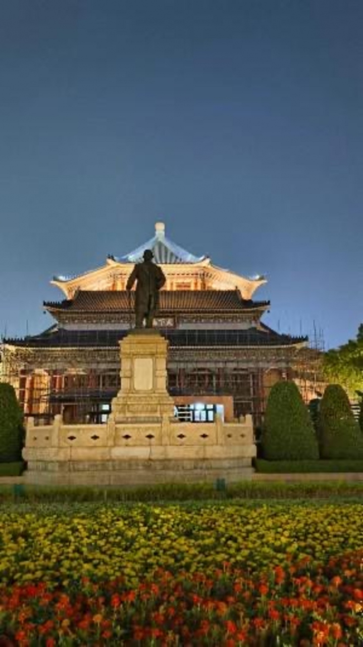 越秀公園を出て、徒歩数分で中山記念堂に着きます。1911年の辛亥革命の立役者である孫文を記念するため寄付によって建てられ、1931年に竣工しました。修理中でしたが、中の見学が開放されています。予約が不要。