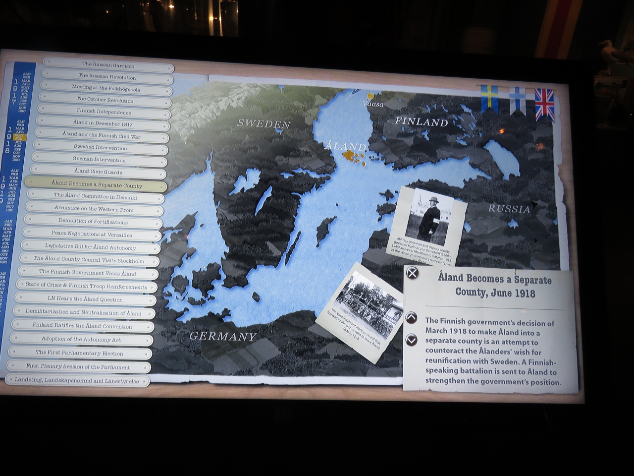 マリエハムンの中心部を東西を結ぶ街路樹が多いエスプラネード通りの東の端の公園の手前にあります。スウェーデンやロシア、フィンランドに支配されてきたオーランド諸島の歴史に関する展示物やオーランド諸島にゆかりのある画家の絵画などが展示されている博物館兼美術館でした。入場料は8ユーロで、閉館時間は17時でした。時間に余裕があったら、見学するといいでしょう。