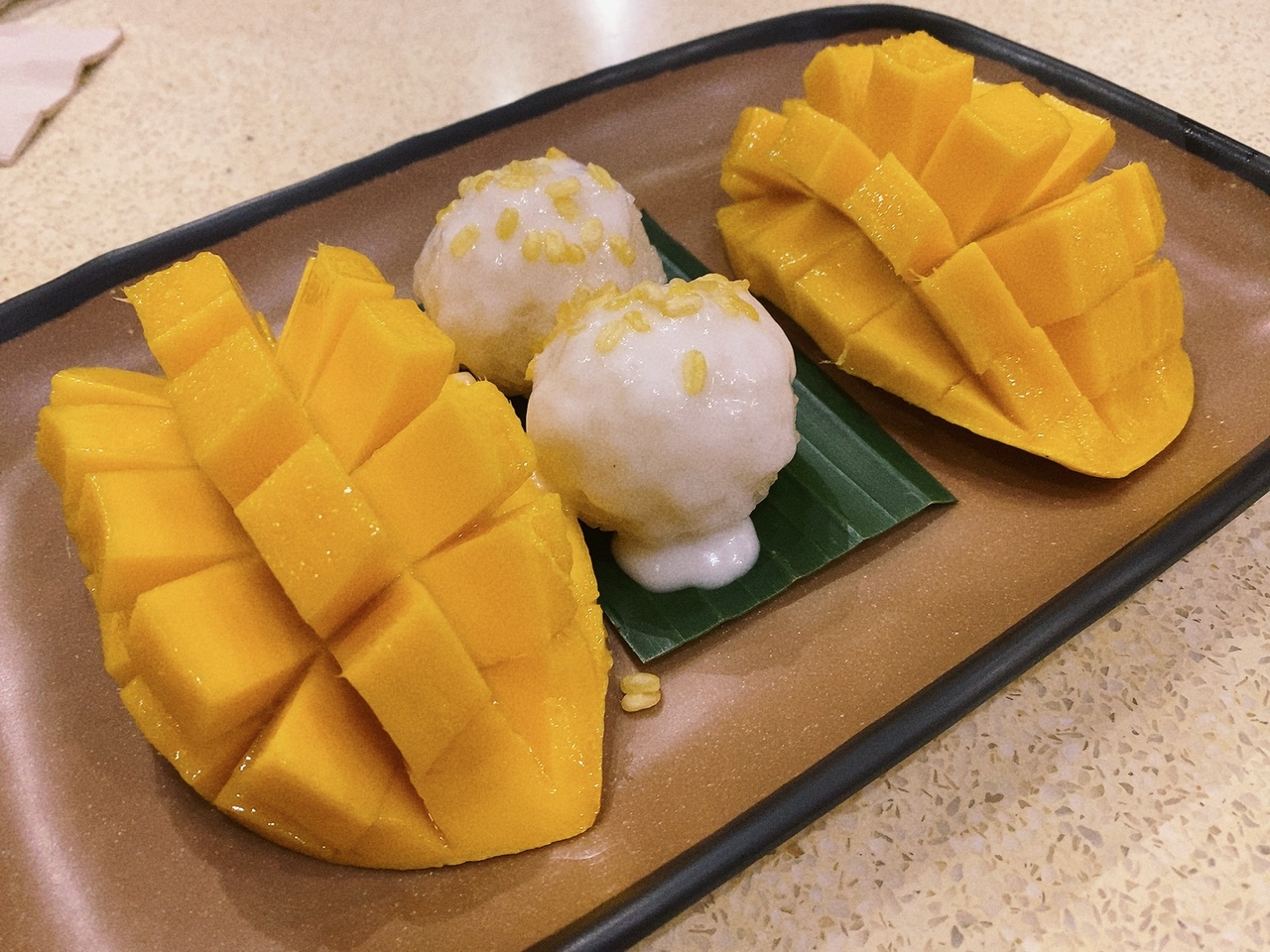 場所柄外国人旅行者のお客さんが多かったです。マンゴーはもちろん、カオニャオの甘さや炊き方もちょうどよく美味しかったです。店の前の大きなマスコットと写真を撮る人がひっきりなしに来ていました。マンゴーはどこも美味しいですが、有名店のも食べる価値ありです。