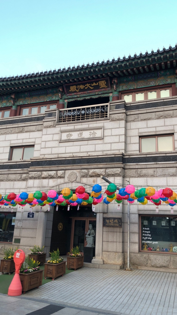 景福宮の西にある小さなお寺です。「ポムニョンサ」と読みます。アートギャラリーが建ち並ぶ通り沿いにあります。法蓮寺自体も、数階建てのビルのような外観です。誰でも自由に入れそうな感じです。1階には、ショップがありました。