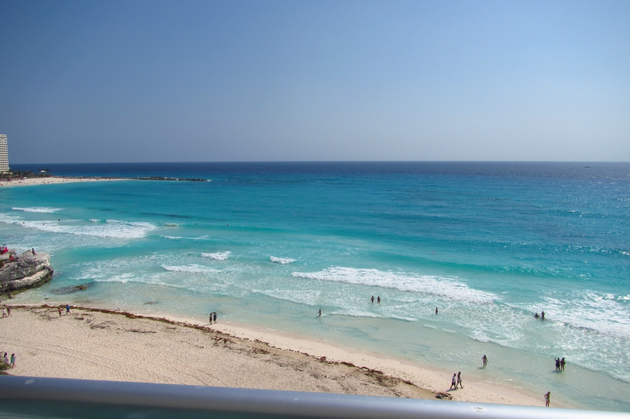 カンクンビーチの北側のフィエスタアメリカーナあたりは緑色でカリブ海がとても綺麗でテンションが上がります