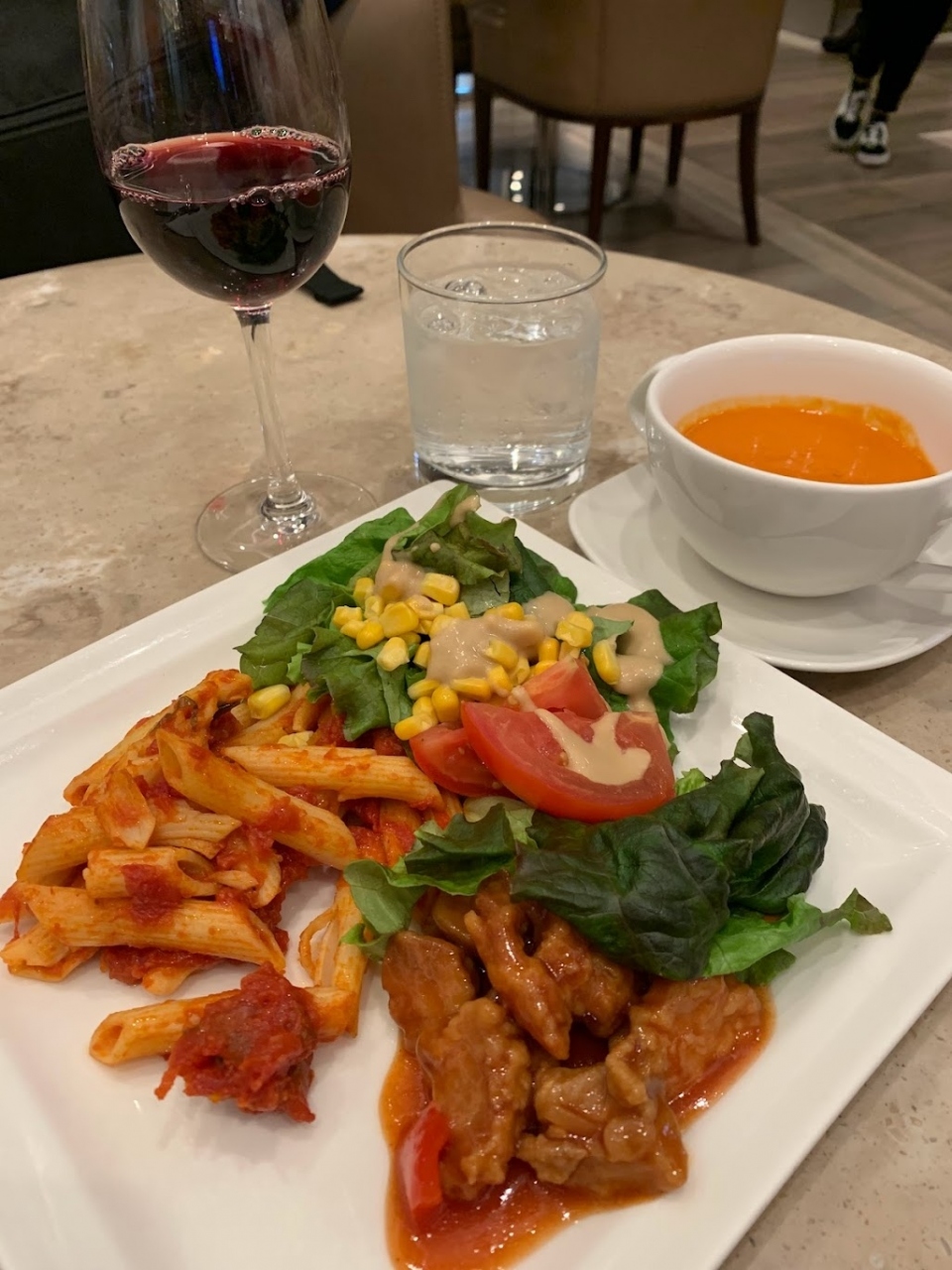 利用料金を払って入ることもできるラウンジということもあり、比較的混雑しているように思います。最大滞在時間は4時間まで。シャワーもあるとのことでしたが追加料金がかかるそうです。料理のメニューもアルコールも豊富にあります。広くて席のパターンもさまざまで、1-2時間ならあっという間に過ごせてしまいます。