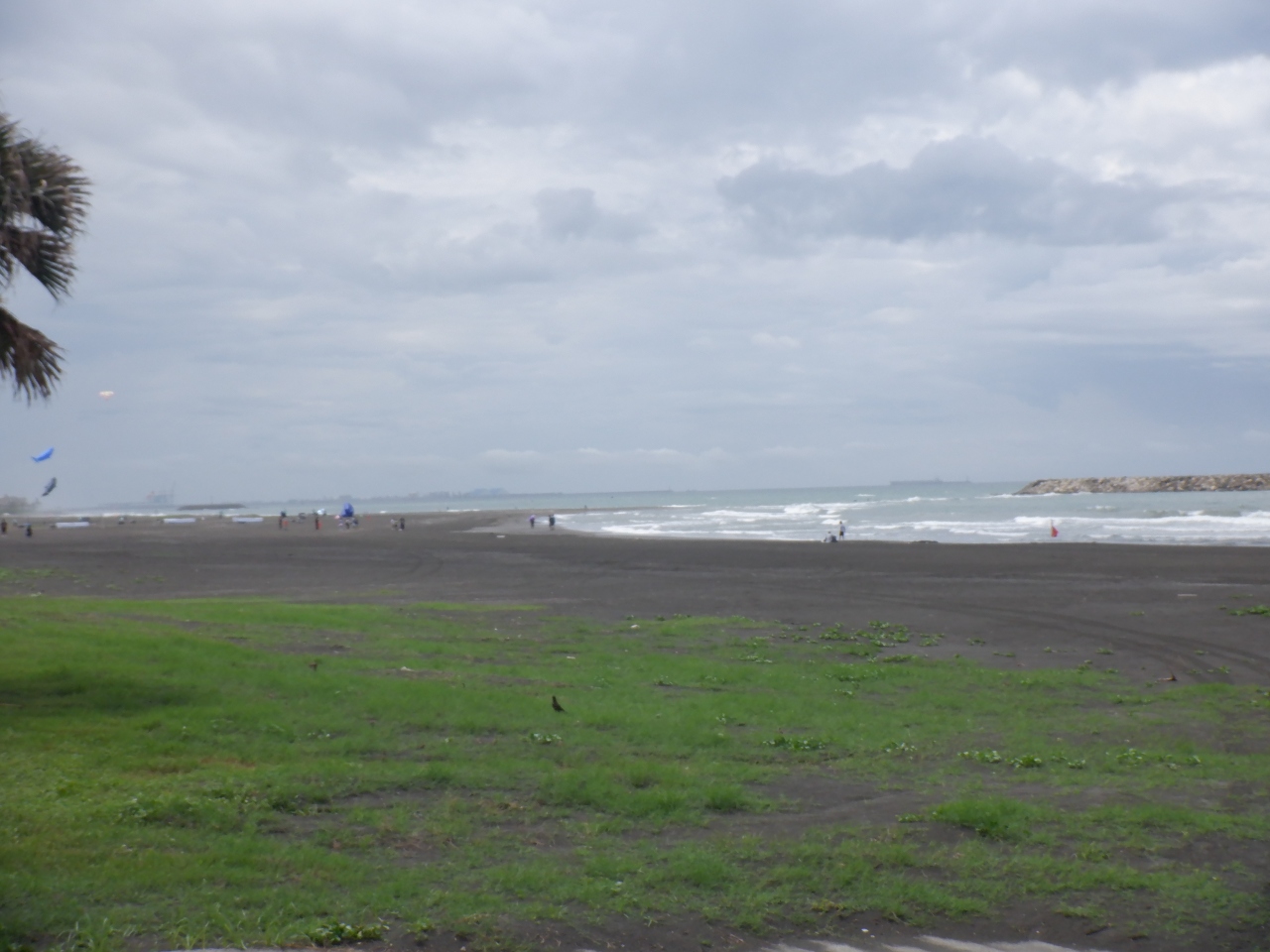 フェリーで旗津半島に渡り、そのまま、人の流れに従って商店街を突っ切っていくと、道路の向こうにきれいな海岸が見えてきます。