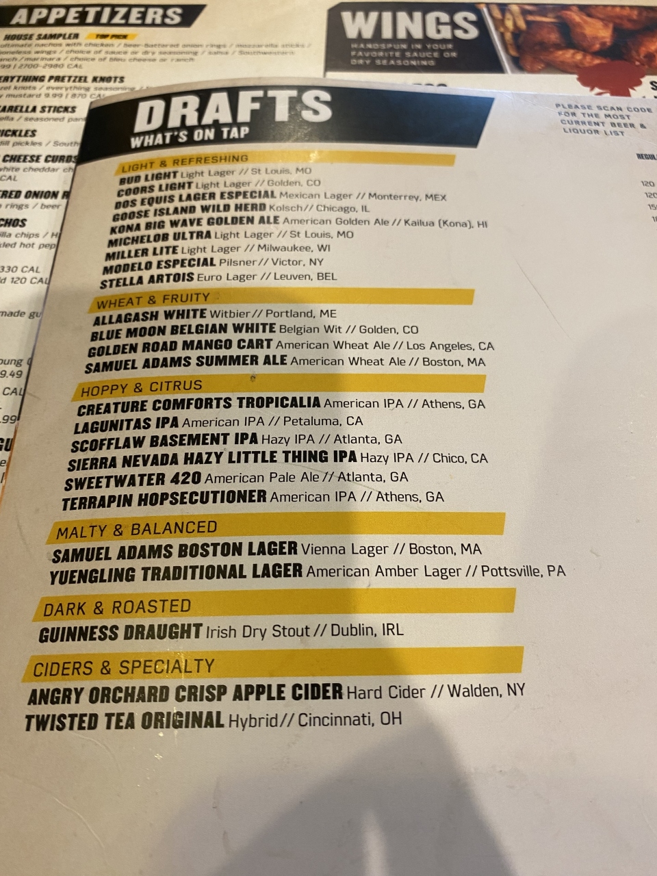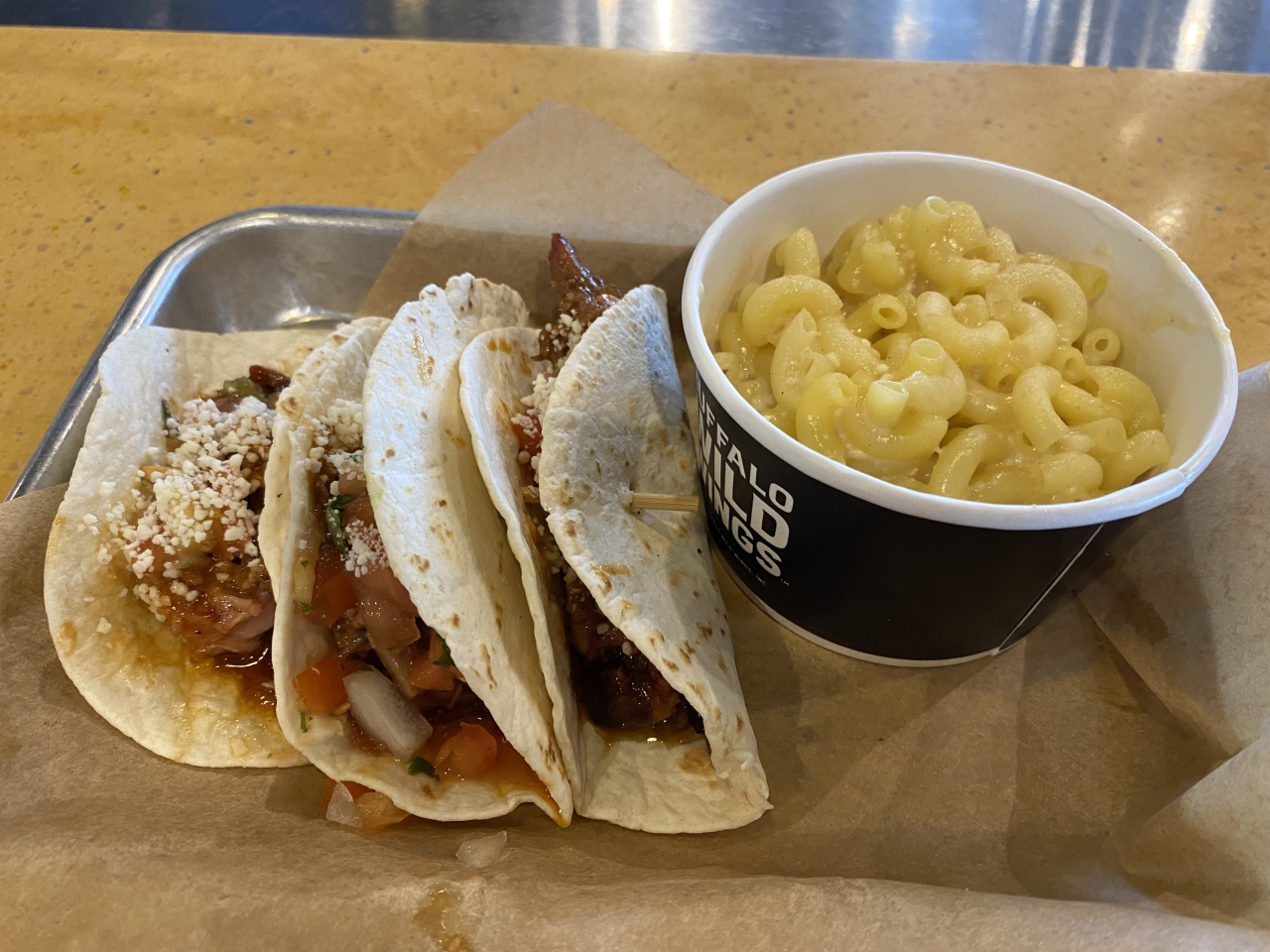 アトランタ空港のコンコースDにある、ニューヨーク発祥のチキンウイングのチェーン・レストランです。プレーン・トレインの駅からエスカレータを上がって2階にあります。朝は残念ながらチキンウイングはやってません。フライトの時間まで、朝からビールと...タコス、サイドにマックンチーズ。空港内ということもありPRICEは高め、チキンウイングが無いなら次は無いかな。