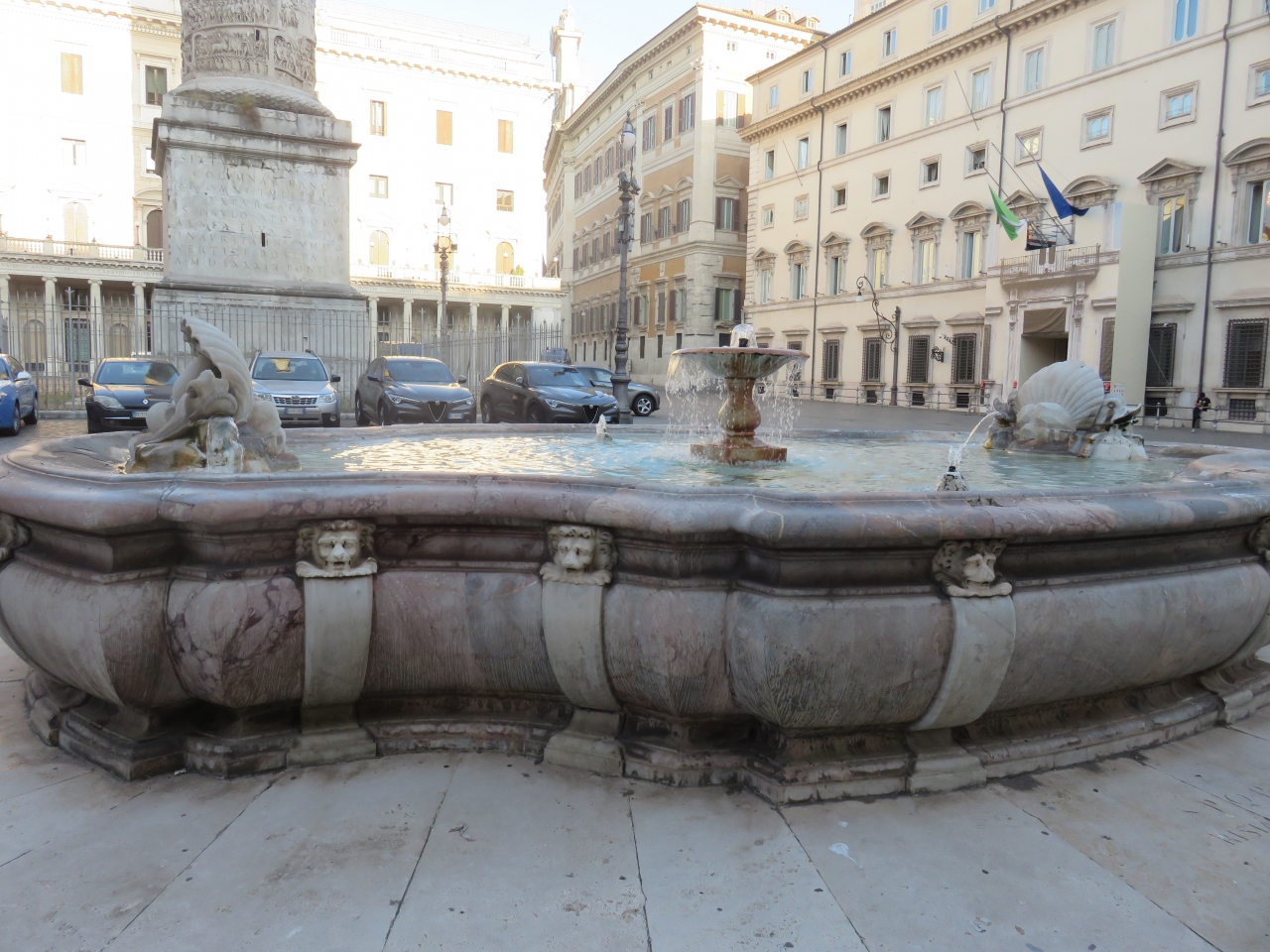 広場の名称は、紀元193年からここに建っている大理石のマルクス・アウレリウスの記念柱から採られているようです。トリトーネ通りとコルソ通りの交差地点に位置しデッラ・ポルタの噴水やキージ宮にマルクス・アウレリウスの記念柱などがあります。