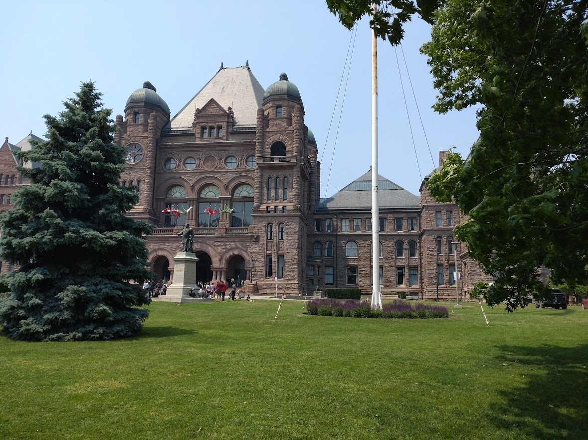 クイーンズパークの中央南側にある建築物です。レンガ造りかなと思って近づいてみたところ、大小さまざまな大きさの石が積み上げられていました。壁は明るさ抑え目、マット感があって渋めの落ち着いた建物で、重厚感がありました。