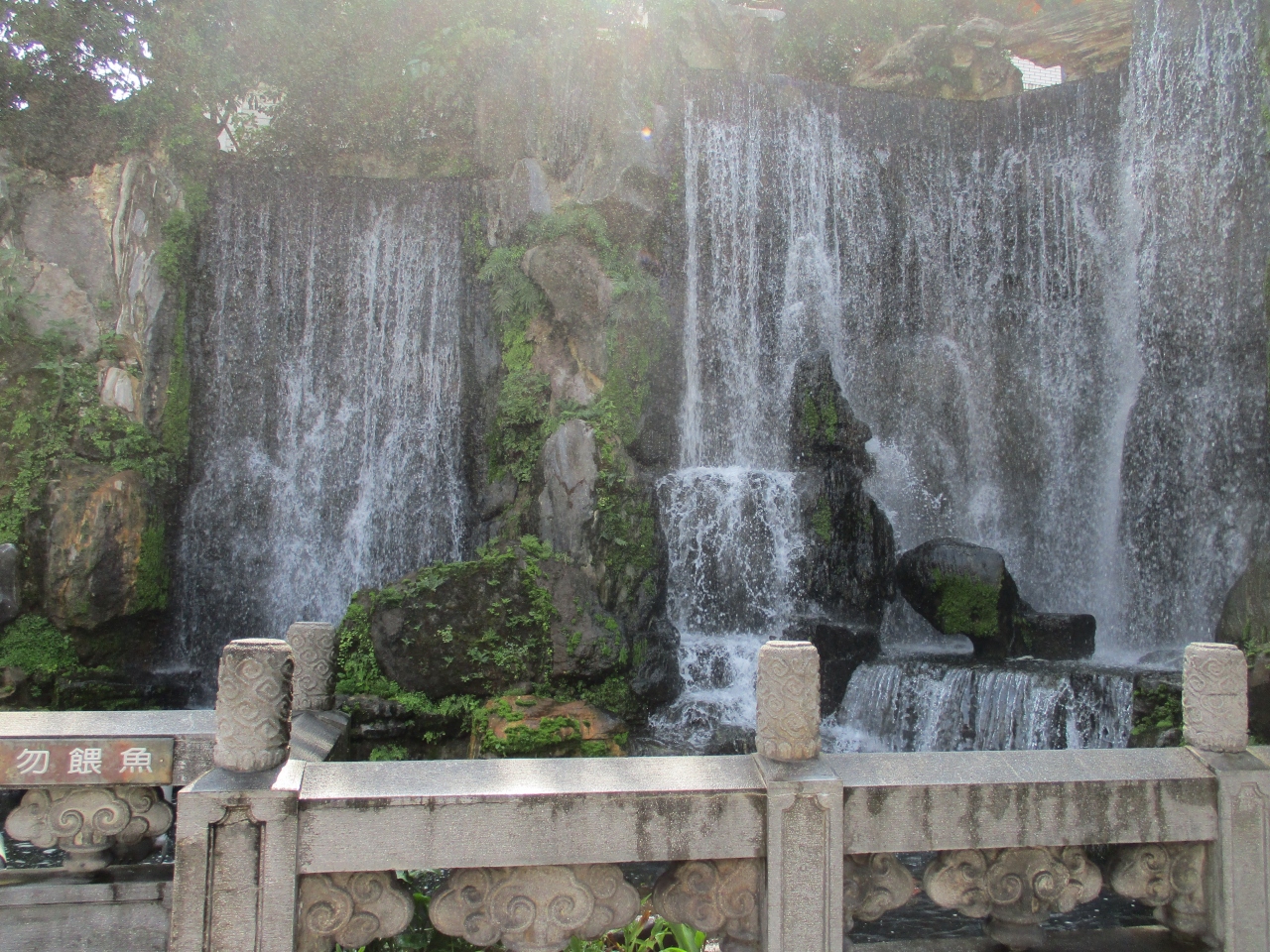 龍山寺の山門を入って右手にあります。人工の滝ですが、ぱっと見そんなふうには見えません。水量が豊富で勢いよく流れていました。近くに寄ると涼しくて、訪れた時とても暑かったのでしばしここで立ち止まっていました。パワースポットだそうですね。