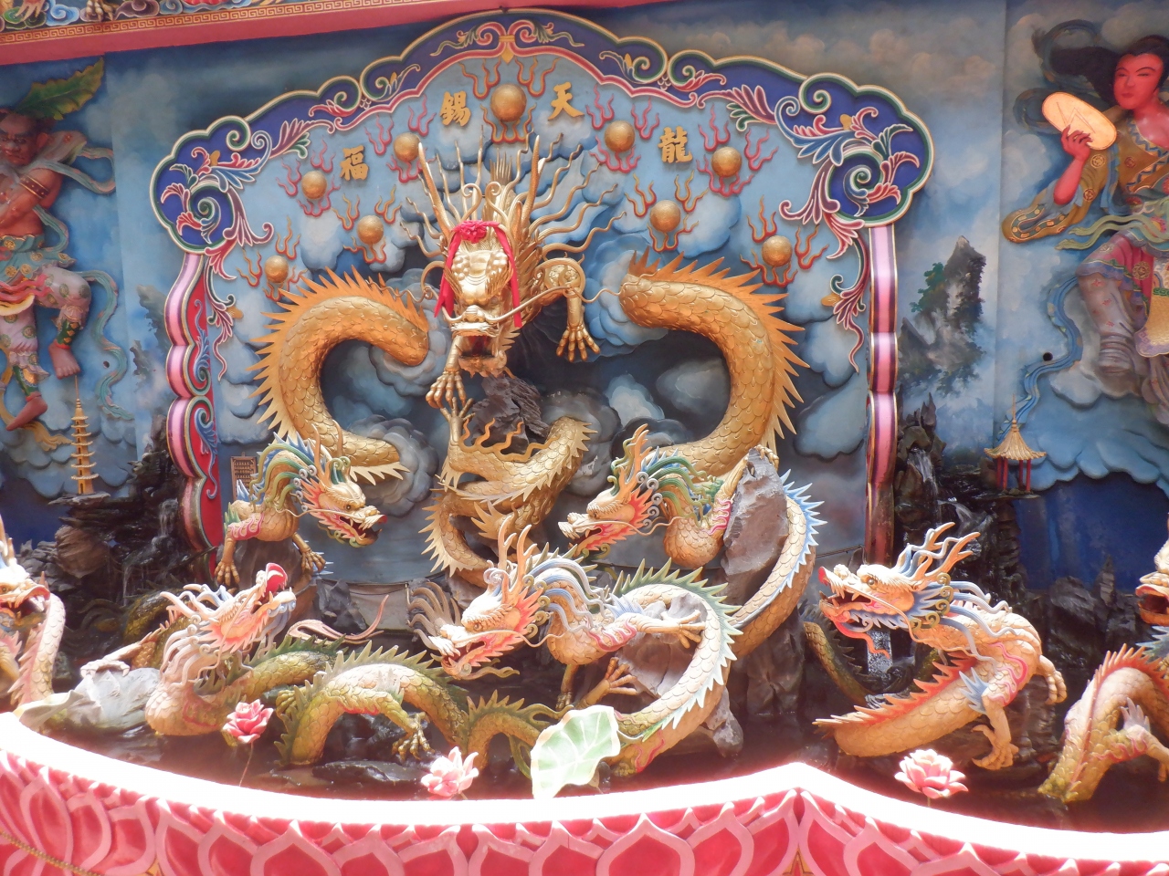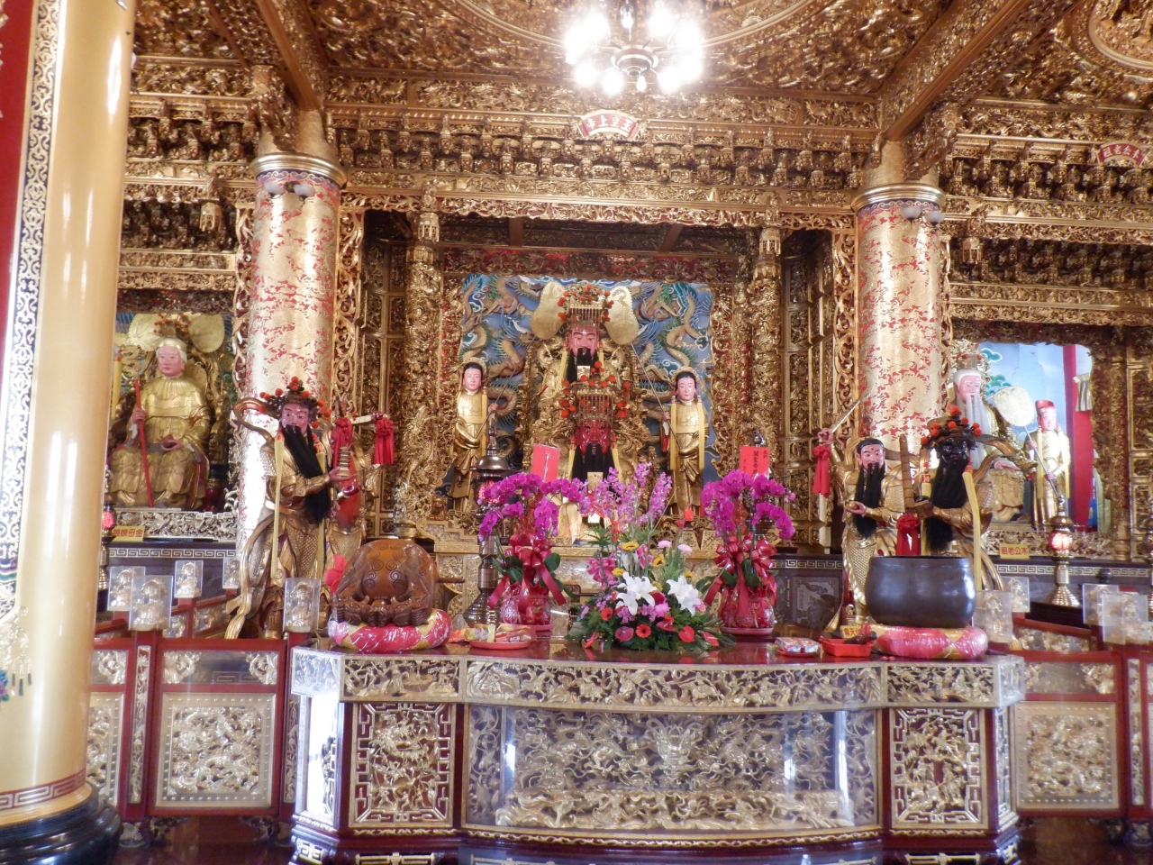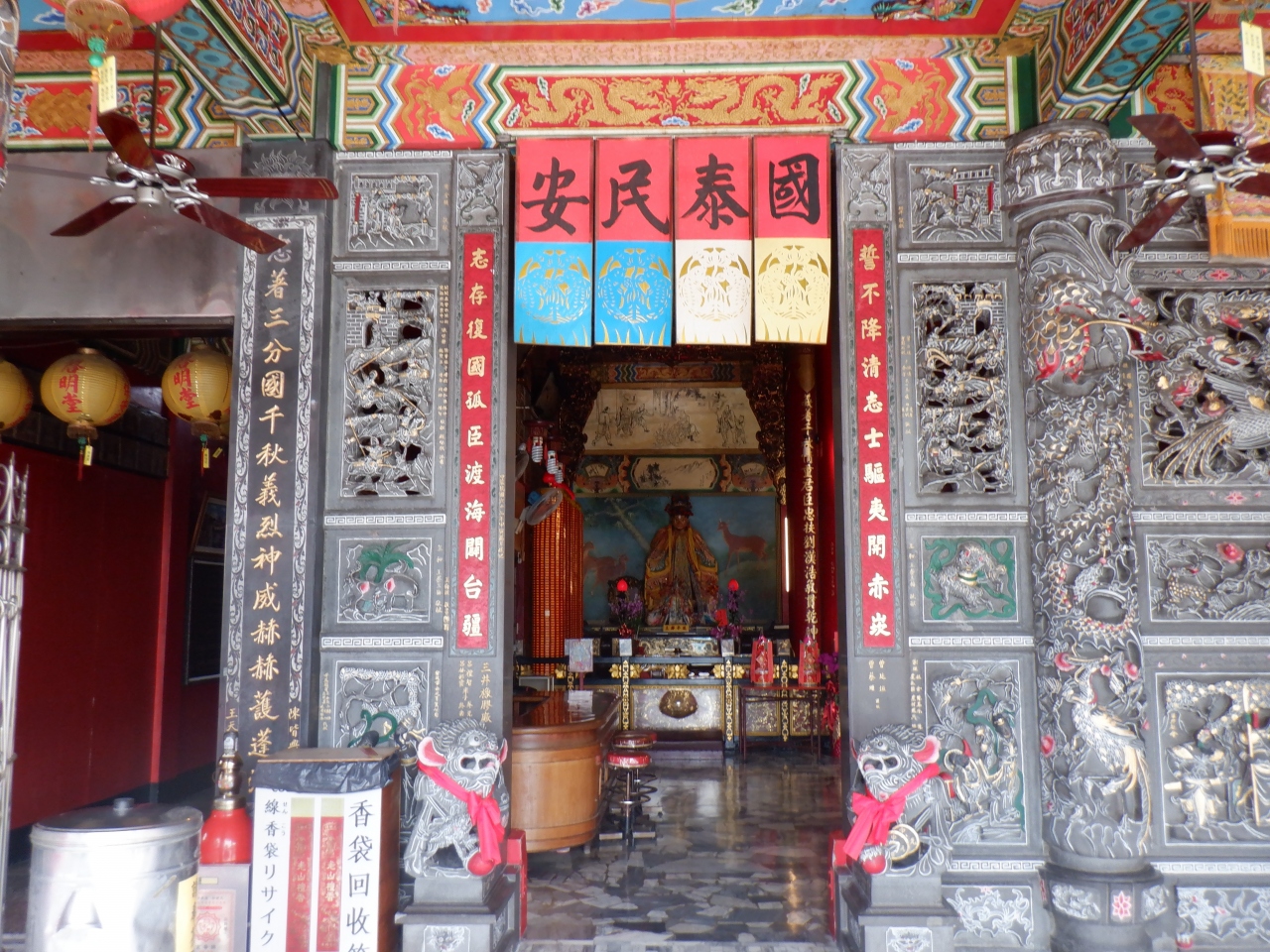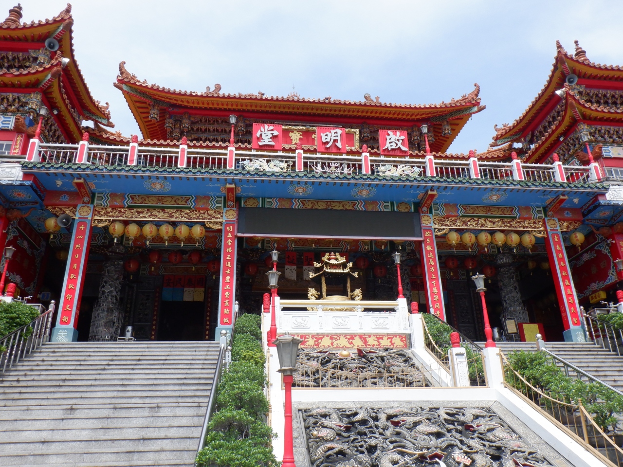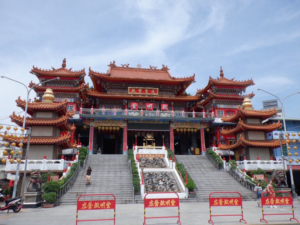 真ん中に彫刻のある階段を登った先に、立派な廟があり(両側に塔がくっついているので、さらに立派)、もちろん中に入ってお参りもできます。