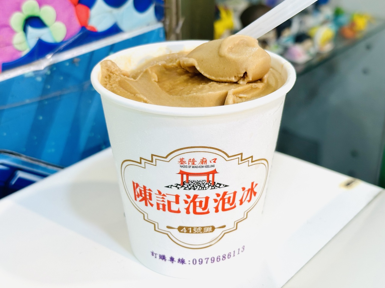 基隆の廟口夜市にあるアイスクリーム店。すぐ近くにある沈家とほぼ同様の営業形態で客から注文を受けた後に作成する。両店を比較するため、同じピーナッツフレーバーを注文した。価格はともに50元。ただ、陳記の方は冷凍させていたもの(作りおいたもの)を取り出し、その場で作ったかのように、表面をかき混ぜた後、手渡された。注文後に作ったものではないから、味に繊細さがなく残念。客がひっきりなしに来る休日であったから、このようにしていた可能性もあるが、いい感じはしない。あまり注文が多くない他のフレーバーにすれば、オーダー後に作ってもらえる可能性が高い。