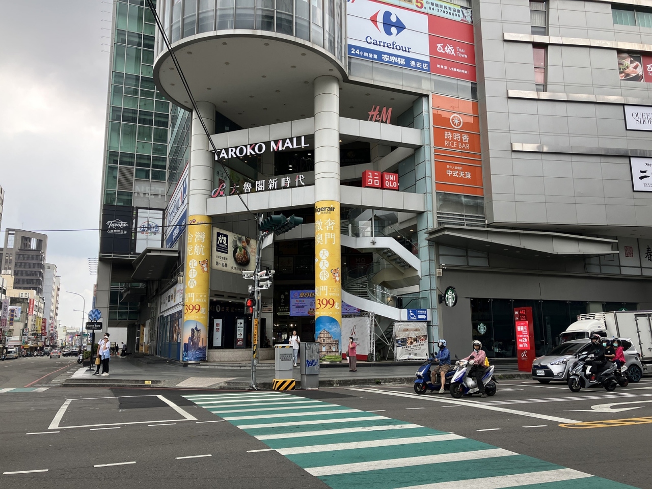 台中駅後站すぐにある太魯閣モールです。入口にはイベントも開催されそうな大きなパティオ、コロナ以降はスライダーは休止されているようです残念です。館内には春水堂がありますし、各所に大戸屋など和食のお店、ABCマートやワコールなど、日本人向けのお店も多いです。また地階のカルフールはお土産探しに良いですし、フードコートも利用しやすいです。