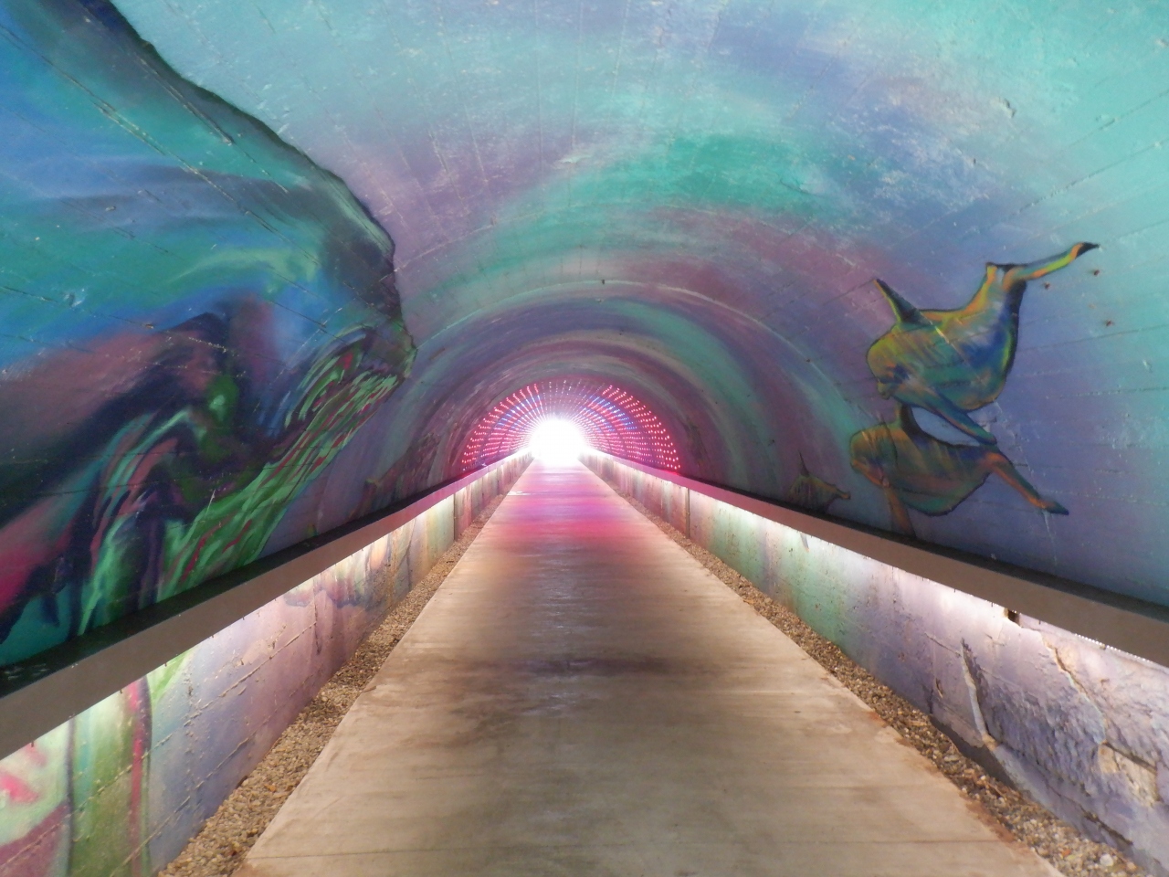 今は、観光用にきれいな照明も付けられ(しかも、途中で色が変わる)、トンネルを抜けるときれいな海を見ることができます。
