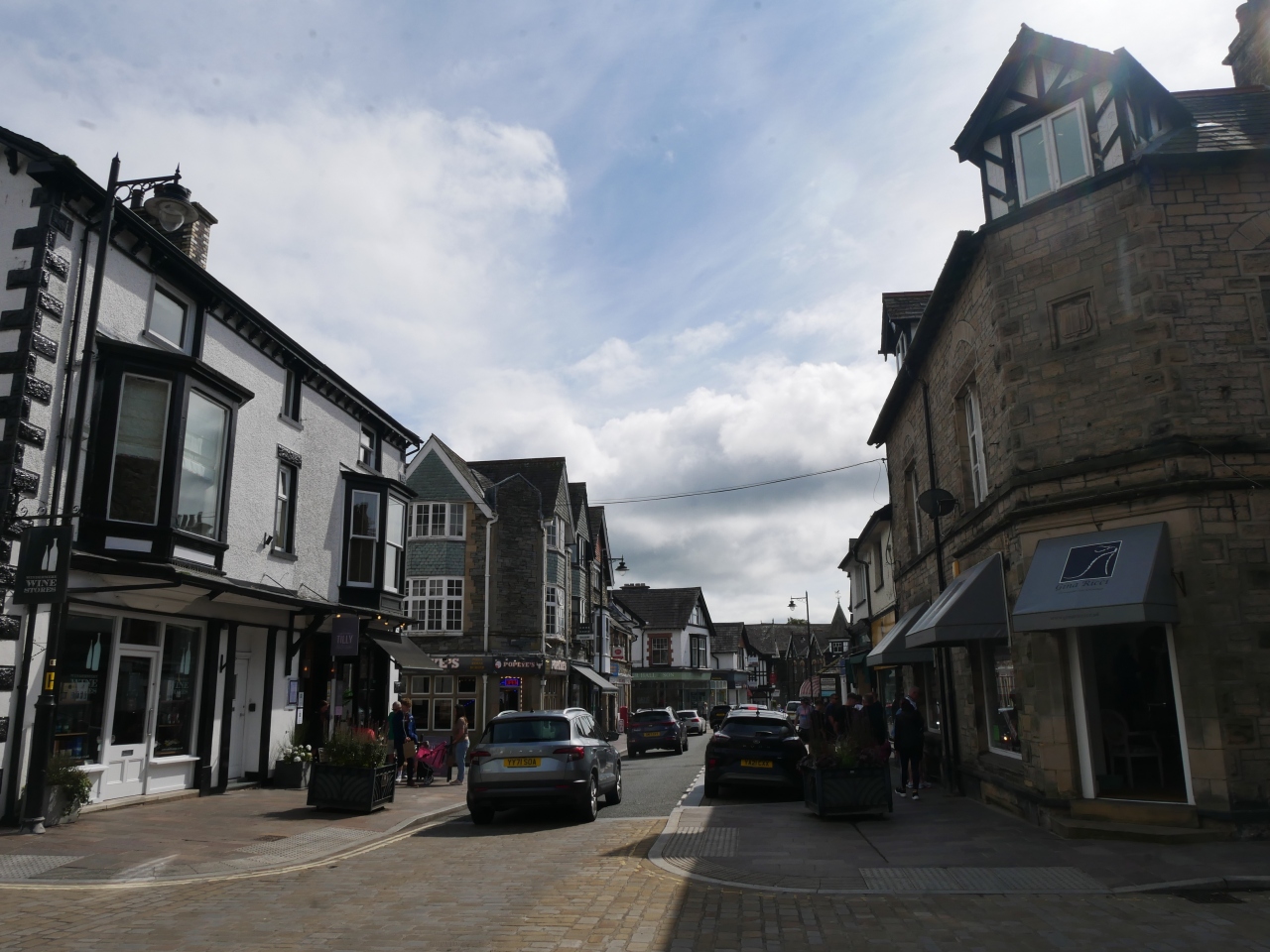 ウィンダミアの町のメインストリートともいえる通りで通り沿いにはレストランやショップが軒を連ねています。