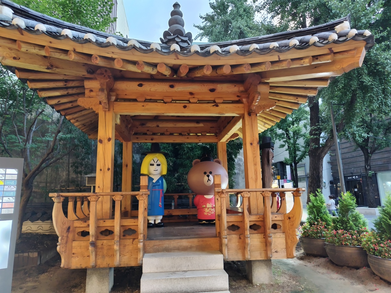広場では秋夕のイベントがあり参加して楽しむ人で賑わっていました。