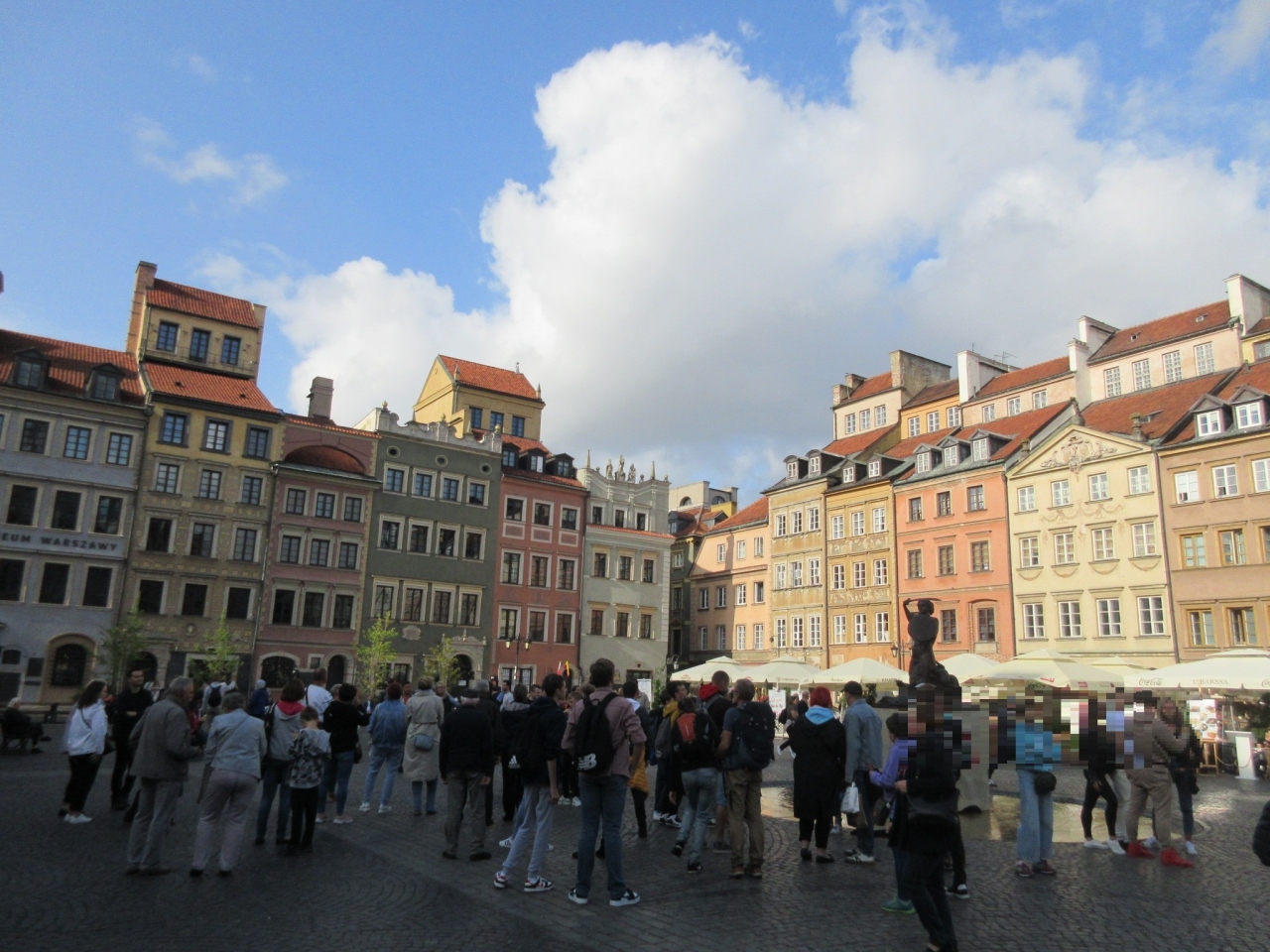 ワルシャワ歴史地区を散策した際、王宮からほど近い【旧市街広場】も訪れました。第二次世界大戦の末期、ソ連軍がビスワ川の対岸まで迫って来たことから、彼らの援護を期待してドイツに反旗を翻したワルシャワ蜂起。その失敗により徹底的にドイツ軍から破壊されたワルシャワ中心部ですが、戦後それを尋常ではない努力により復旧させて出来たのが現在の街並みとのこと。復旧されたとは感じさせない位の、ヨーロッパらしい町並みが広がり、パラソルを広げた出店やおみやげ物屋さんなど、そぞろ歩きを楽しむことが出来ました。