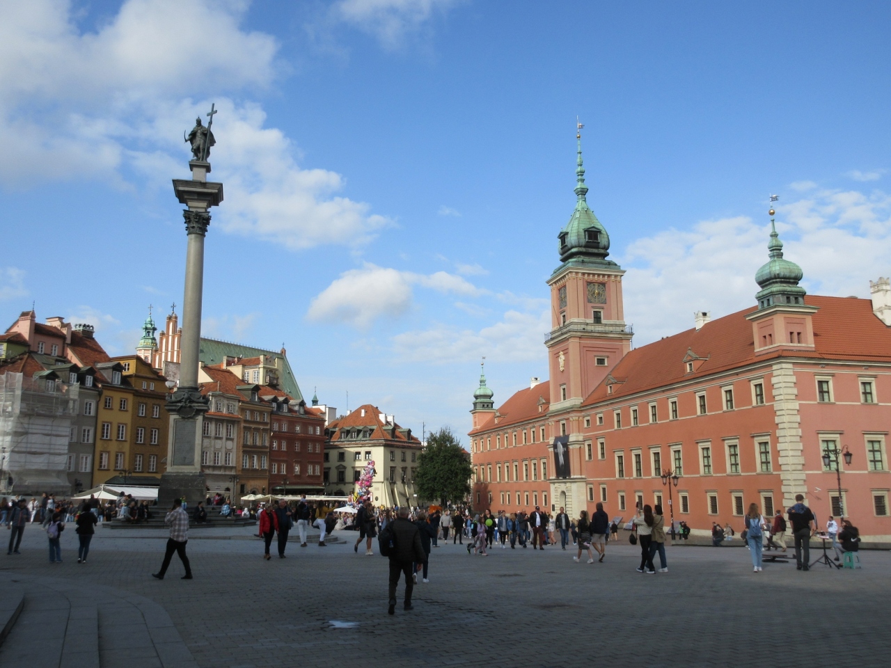 ワルシャワ観光の中心となるのがこの王宮前広場となっていて、クラクフ通りを北上して来ると、一気に視界が広くなり右手に【王宮】、左手に【ジグムント3世の像】がそびえていました。この【ジグムント 3 世の像】のあたりが少し高くなっているので、そこからは王宮の全景をカメラに収めることが出来ました。