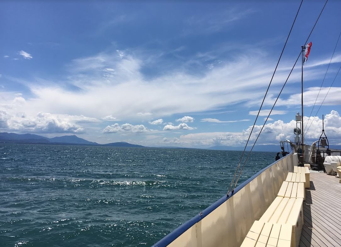 レマン湖は大きいので海のようですが、湖なのでデッキで風を浴びても塩でべたべたせずにとても気持ちいいです。