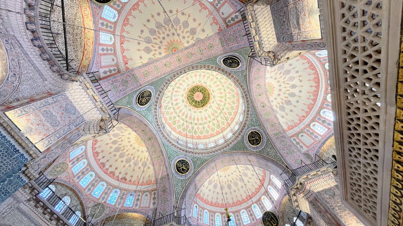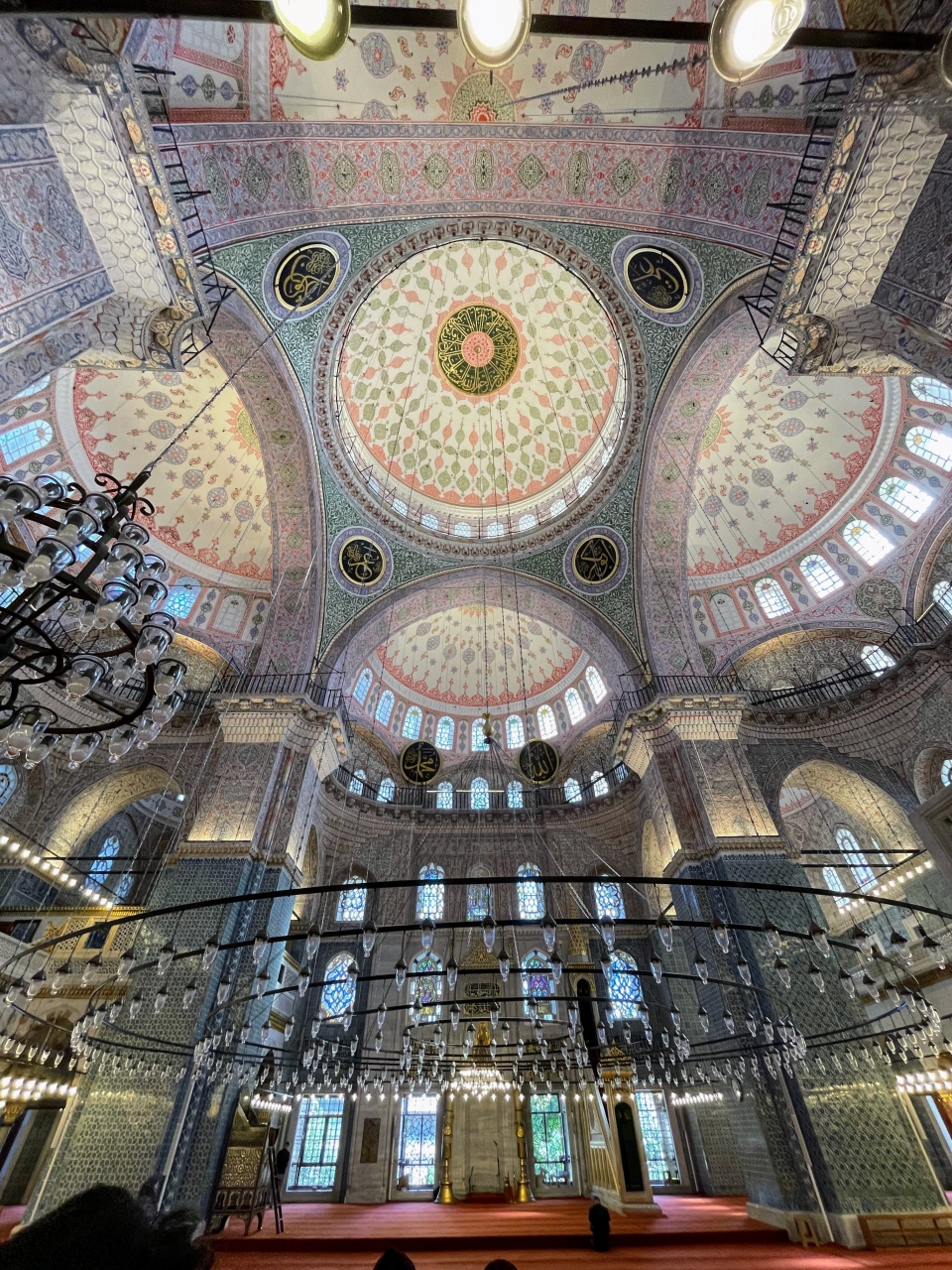 前知識無く入ったらびっくり!スルタンアフメット・ジャミィ(ブルーモスク)に入る前に訪れたのですが、外観から想像する以上の高い天井とドームの美しさ。少しピンクがかった色合い。訪れる人は桁違いに少なく、本当にゆっくりとしていられる場所です。