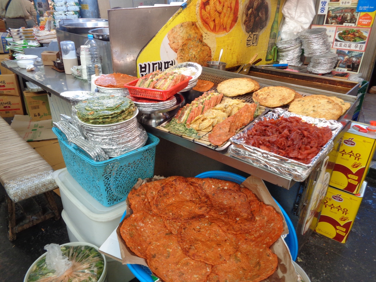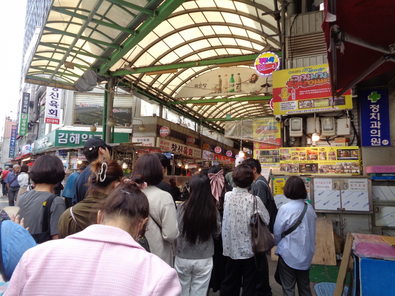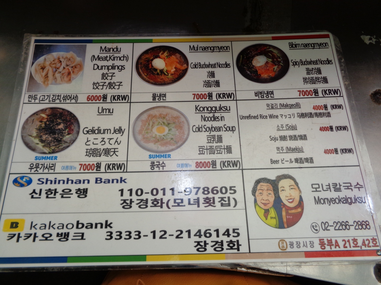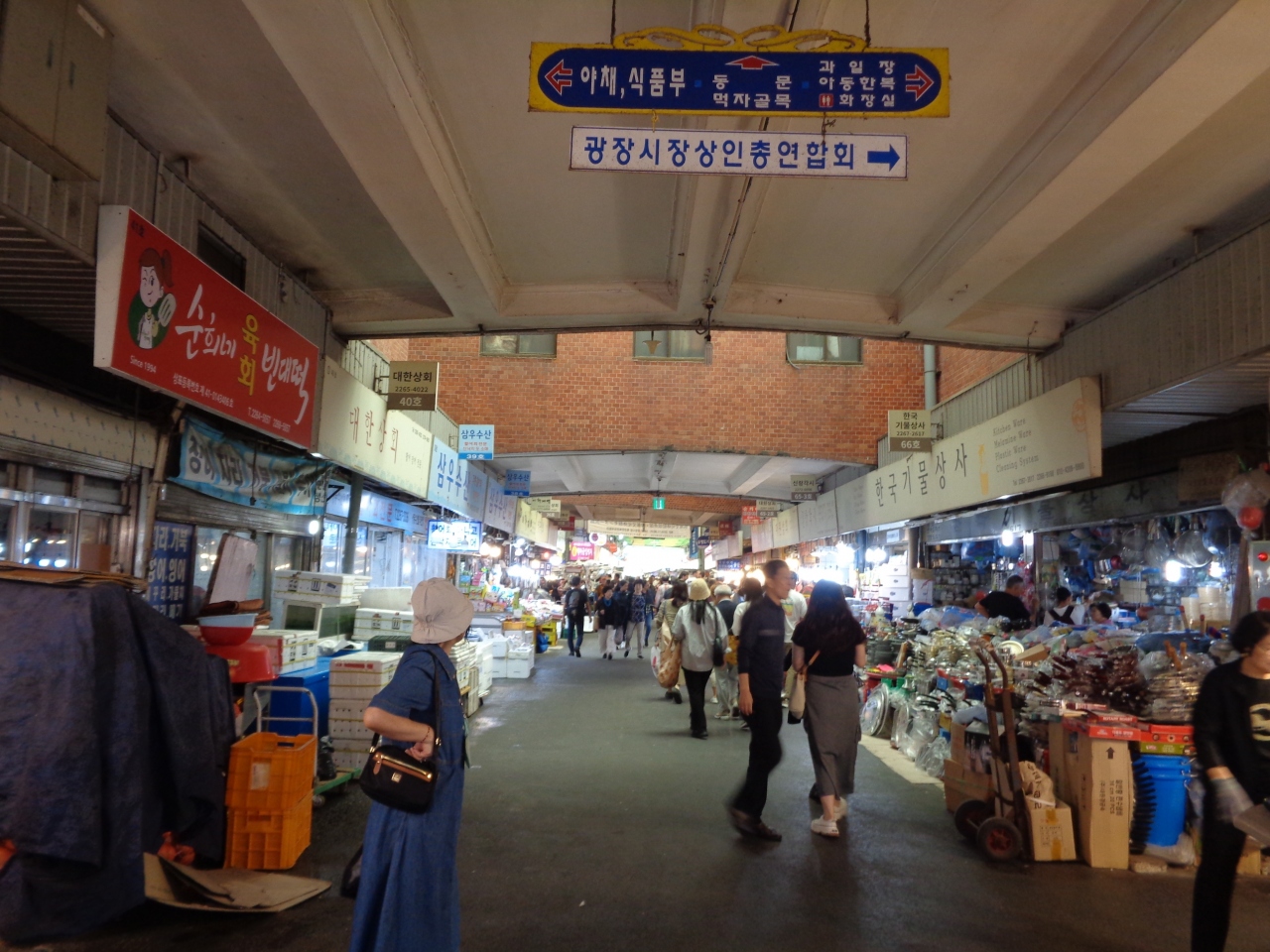 広蔵市場のお店は路上の屋台と違って、ほぼ全てのお店に日本語メニューがあるので利用しやすい。食べ歩きが楽しいですが、ゴミ箱は全く見つけられませんでした。