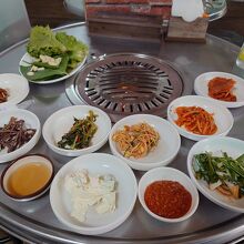 お店に到着すると、こんなことしていいの?と思うくらい大きな井之頭五郎さんのポスターが貼ってあって、日本人ならすぐわかる(韓国でも孤独のグルメは人気らしい)。店内も松重豊さんや久住昌之さん、韓国のタレントを中心に多数のサインが飾ってあります。今回、少し時間を外した14時くらいに訪問しましたが、チゲを食べているお客さん1人で、テレビ(久住昌之さんとのトークにも出ていた)よりかなり無愛想な店主さんが、適当に座れと案内されました(多分、五郎さんが座った席で食べたと思う)。韓国のの昔ながらの雰囲気が残っているそうで、丸いテーブルの真ん中に炭火を入れてお肉を焼くスタイル。デジカルビが食べたいというと、2人前からだという。五郎さんが食べたチャドルバギ(日本で言うともバラ肉)とテンジャンチゲは諦めて、デジカルビ2人前を注文。まず、「怒涛の小皿ラッシュ」と称されたおかずが出てきましたが、確かに種類は多いものの、五郎さんよりは少ない気もする。デジカルビは炭火で焼き、店主さん自らがハサミで食べやすい大きさにお肉を切りながら焼いてくれました。甘しょっぱい味付けのお肉は柔らかく、香りも良い。ごま油につけておかずと一緒にエゴマやサンチュに巻いて食べるとさらに美味。タレはさっぱりとした酢の効いたものと味噌の2種類でどちらも美味しい。あっという間に食べてしまった。