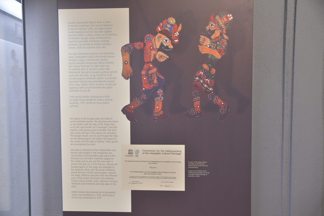 モスクのイエシル・ジャーミやイエシル・テュルべを見た後博物館を訪問するとよりブルサの文化が深まる。元はイェシル・ジャーミ―に付属のメドレセだったが美術博物館となった。興味深いスルタンの帽子や宮廷の衣装、女性の高下駄も面白い。ブルサの伝統芸能・ユネスコ無形文化遺産「カラギョズ」の説明も理解が深まる。
