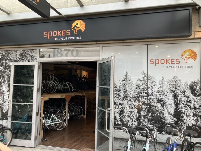 市内に何店舗かあるSpokesというレンタルバイクのカナダプレイス近くの店で自転車を借りる。立地が良かったのと、ウェブでざっと見たらここが子供用が安そうだったので、ここにしたのだけど、ウェブの値段より値上がりしていた。大人用が1時間半(15分単位で後で清算)で18ドル、子供用が12ドルだった。母子3人で42ドル(約4,600円)。なかなか贅沢なアクティビティだが仕方ない。