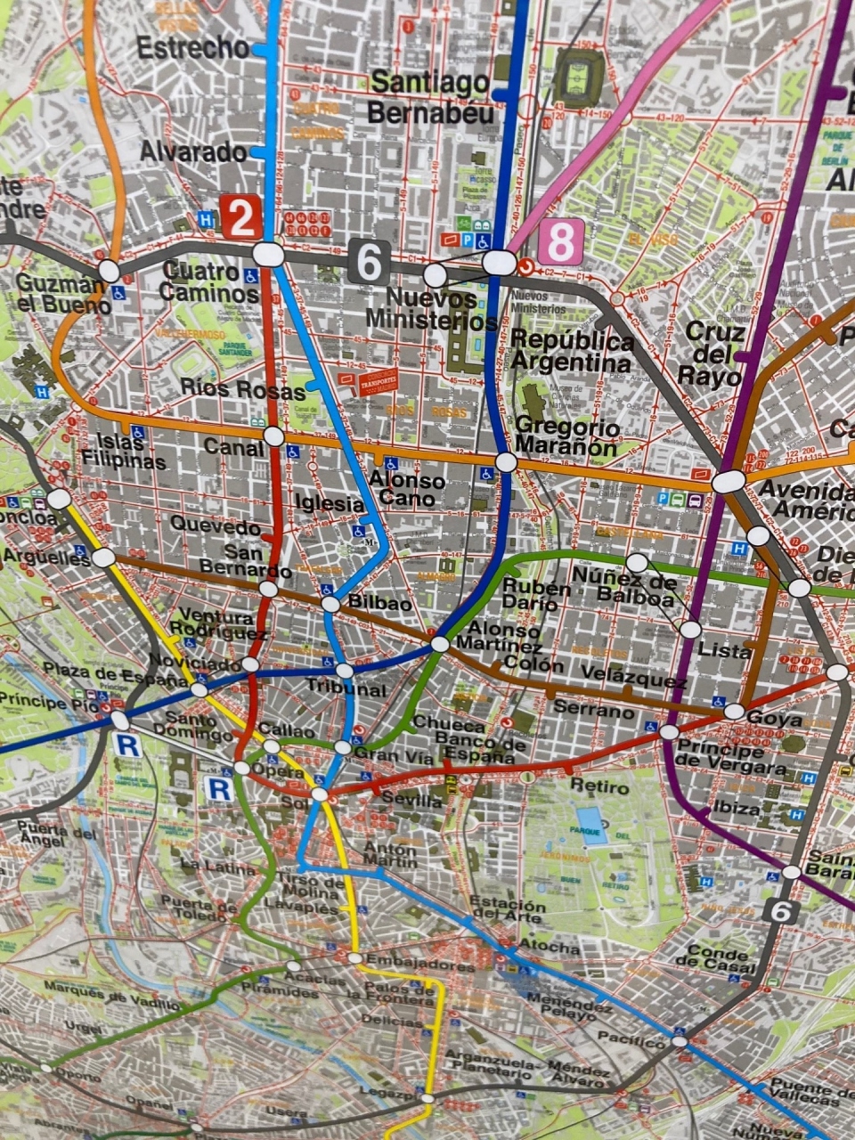 マドリードの地下鉄は日本と同じ程度には利用しやすいと思います。観光客が行く駅はある程度決まっていますが、ゲルニカを見るために利用したかった路線が使われておらず、別の路線を利用することになり少し歩きました。時々、利用できない路線があったり現地に行かなければわからないことはありますが、適宜タクシー利用でも便利です。