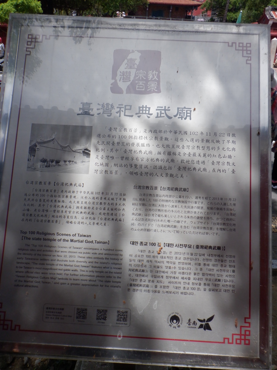 大天后宮は台湾最古の媽祖廟ですが、こちらは、台湾各地にある関帝廟の総本山だそうです。