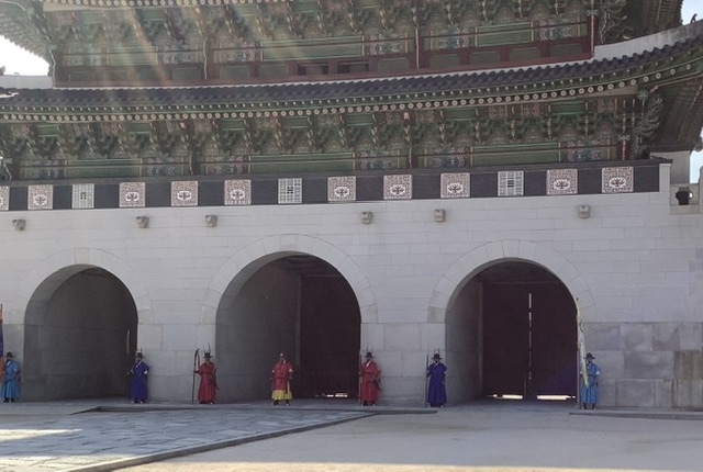 光化門は景福宮の一番最初の門でいつも衛兵が立っています。