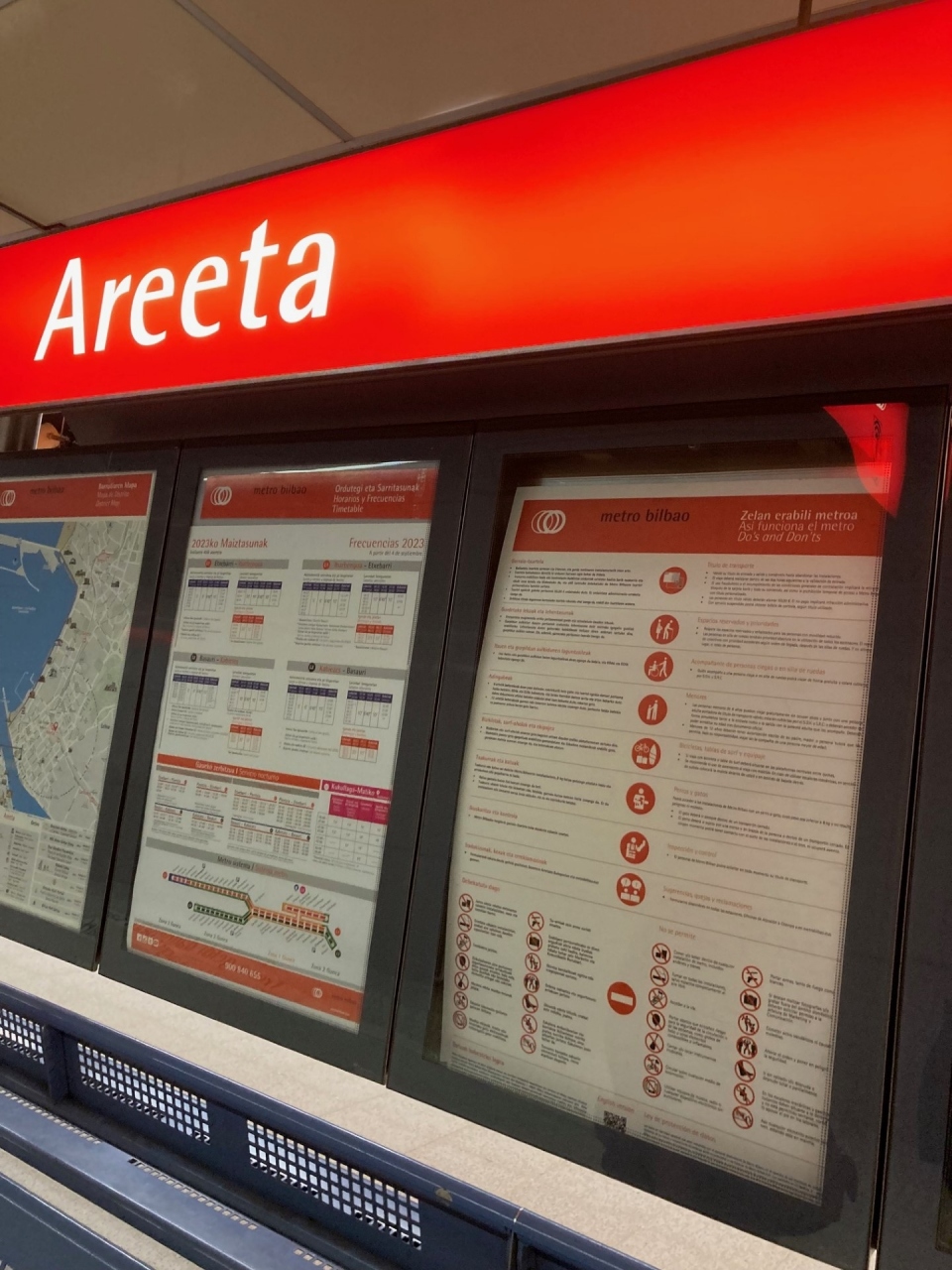 ビスカヤ橋観光後徒歩で10分弱歩きこの地下鉄駅を利用して市内中心部に戻りました。行きは鉄道を利用して川の向こう側の鉄道駅を利用しました。行きと帰りで変えると面白いと思います。地下鉄ですが郊外は地上となっていました。