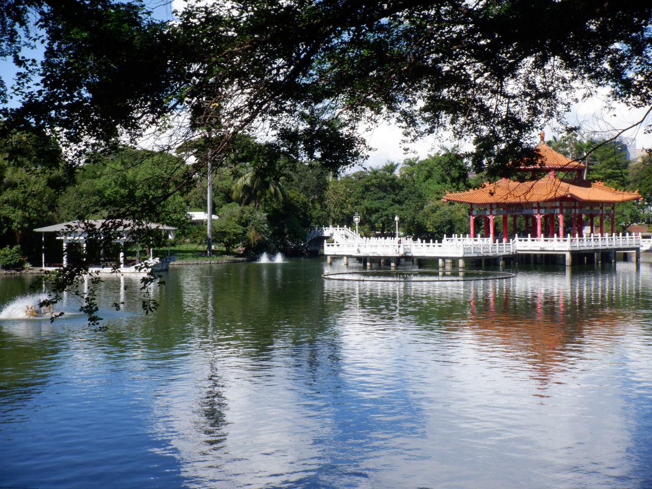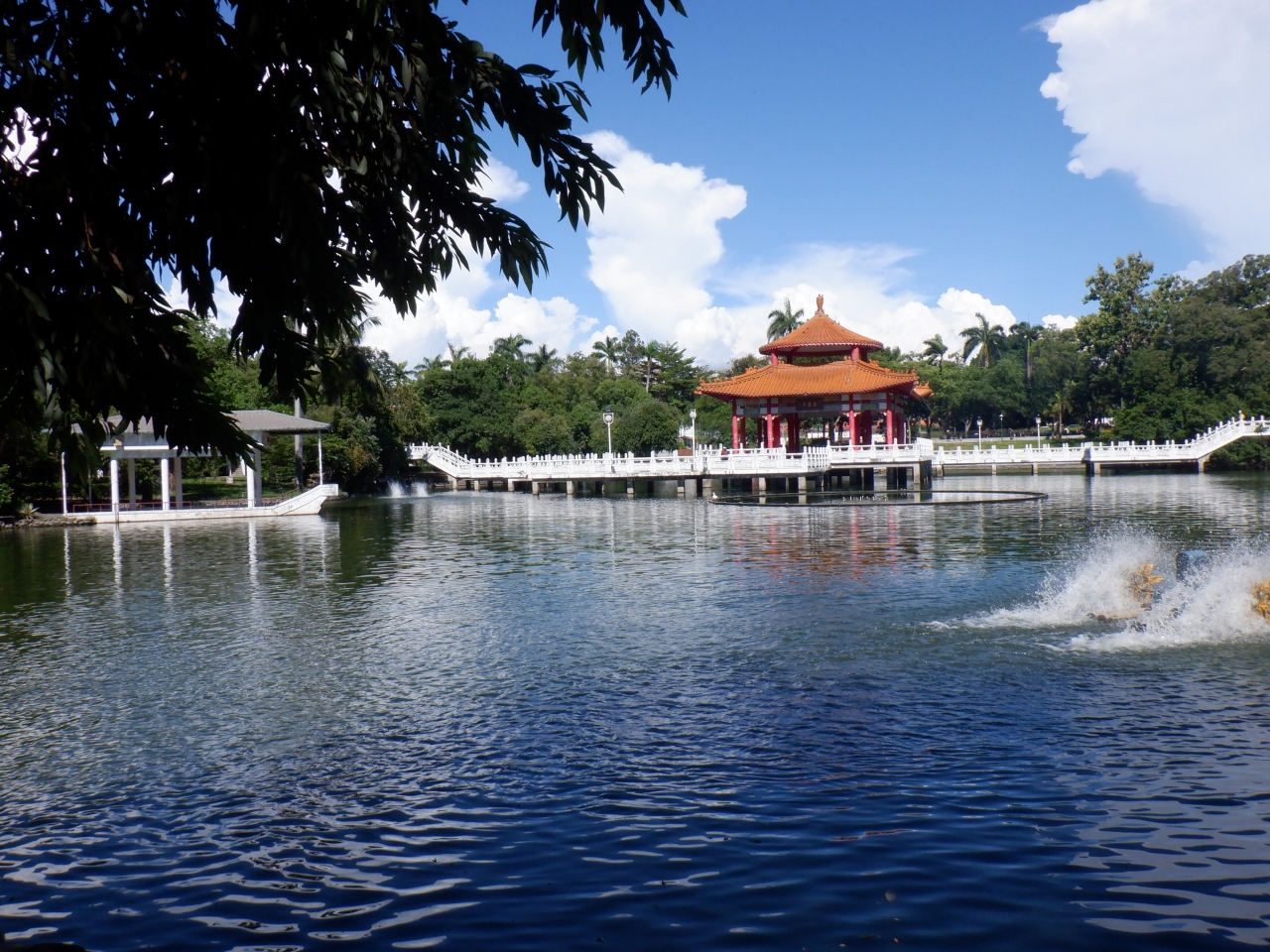 大きな池とその中の東屋というか立派な建物?そして、そこにいく橋がメインの公園だと思いますが、それだけではなく、暑い中、地元の人みたいのがのんびり散歩していたり、日陰のテーブルでは、何人か集まってトランプみたいのをしていたり、何となく懐かしい中国の雰囲気が感じられる公園でした。