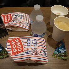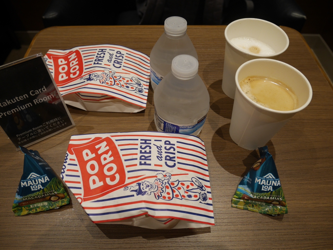 コーヒーとマカチョコ、タイムサービスでポップコーンもいただきました。
