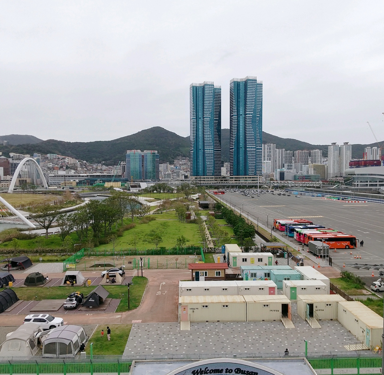 目の前にはキャンプ場のようなものがあり、テントが張られていたり、家族で遊んでいる光景が見られました。