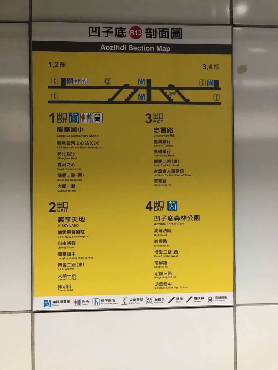 宿泊したホテル(高雄マリオットホテル)の最寄り駅でした。高鉄左営駅からは、MRTに乗り換えて一本です。LRT愛河之心駅と乗り換えができますが、それぞれの駅は100m以上ほど離れていて、大きな道路の横断の必要もあるので、乗り換えには時間に余裕を持った方が良いです。