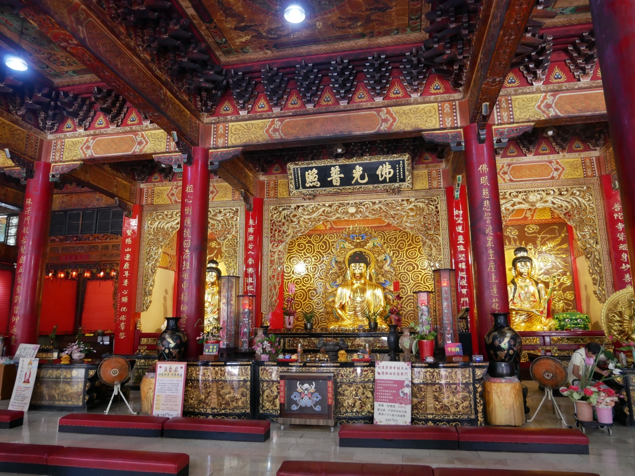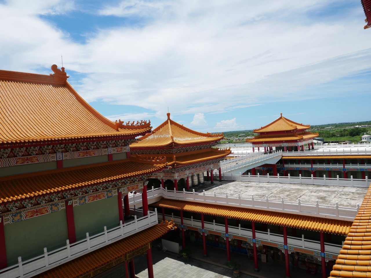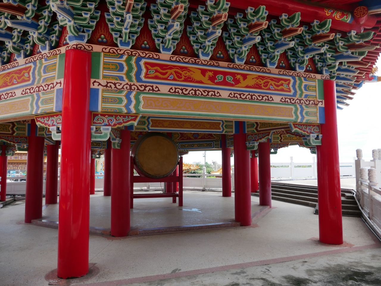 駐車場には2体の巨大な順風耳像が建ち。寺院も、ものすごく規模が大きくて立派です。
