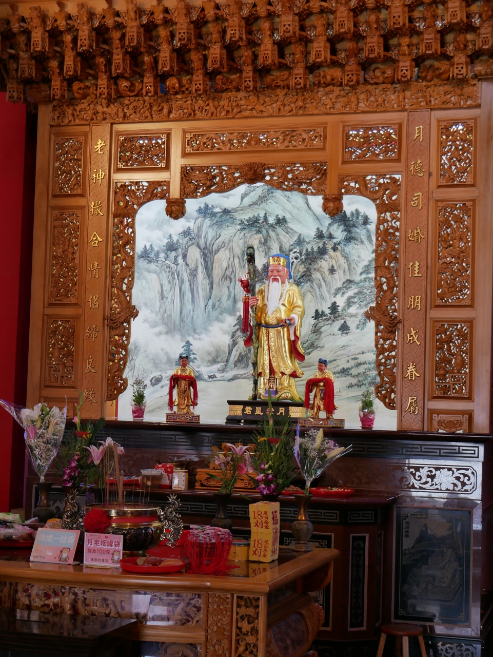 あと、お約束の月下老人もいて、おかげさまで結ばれましたみたいな写真がたくさん飾られていました。