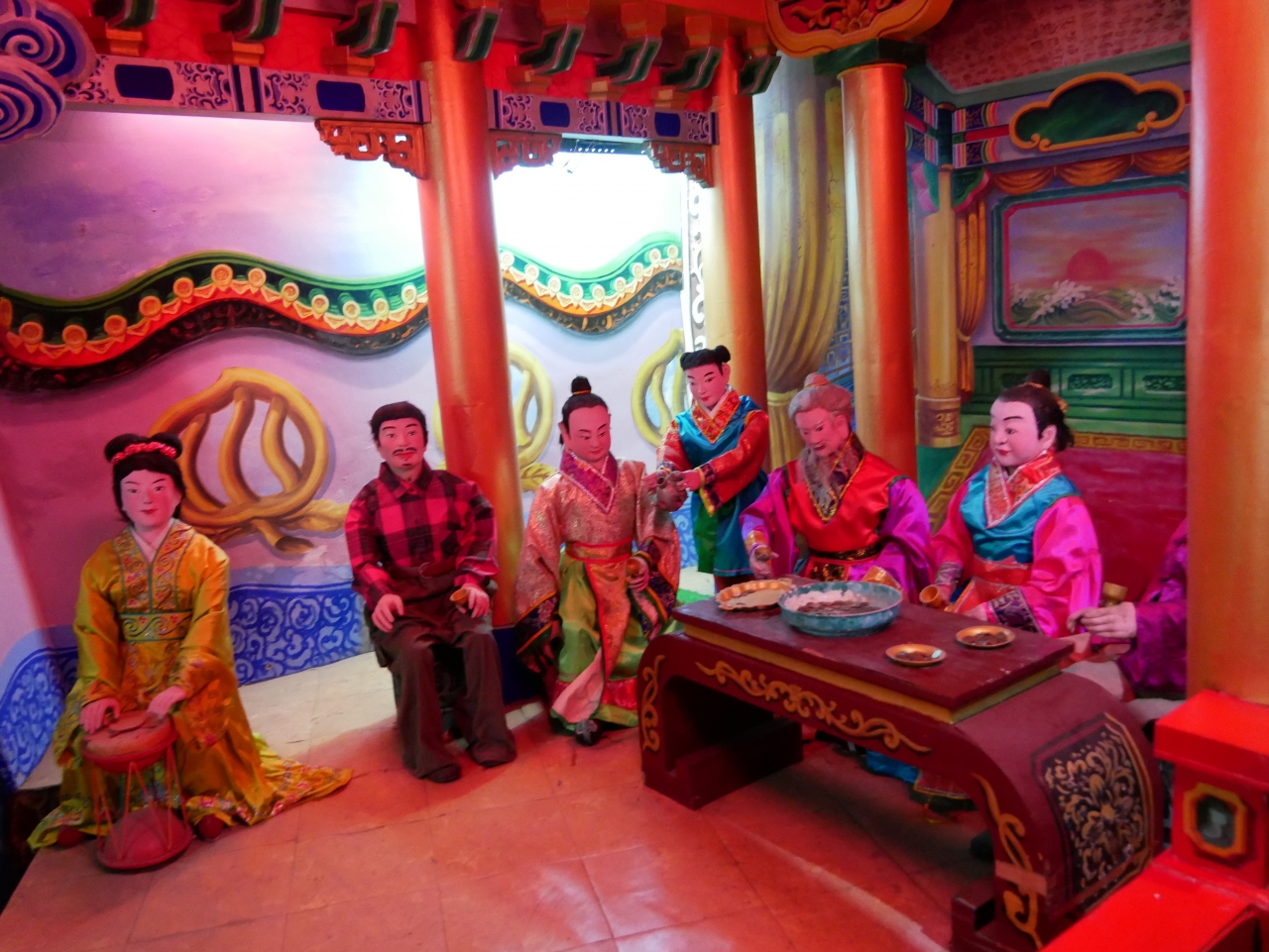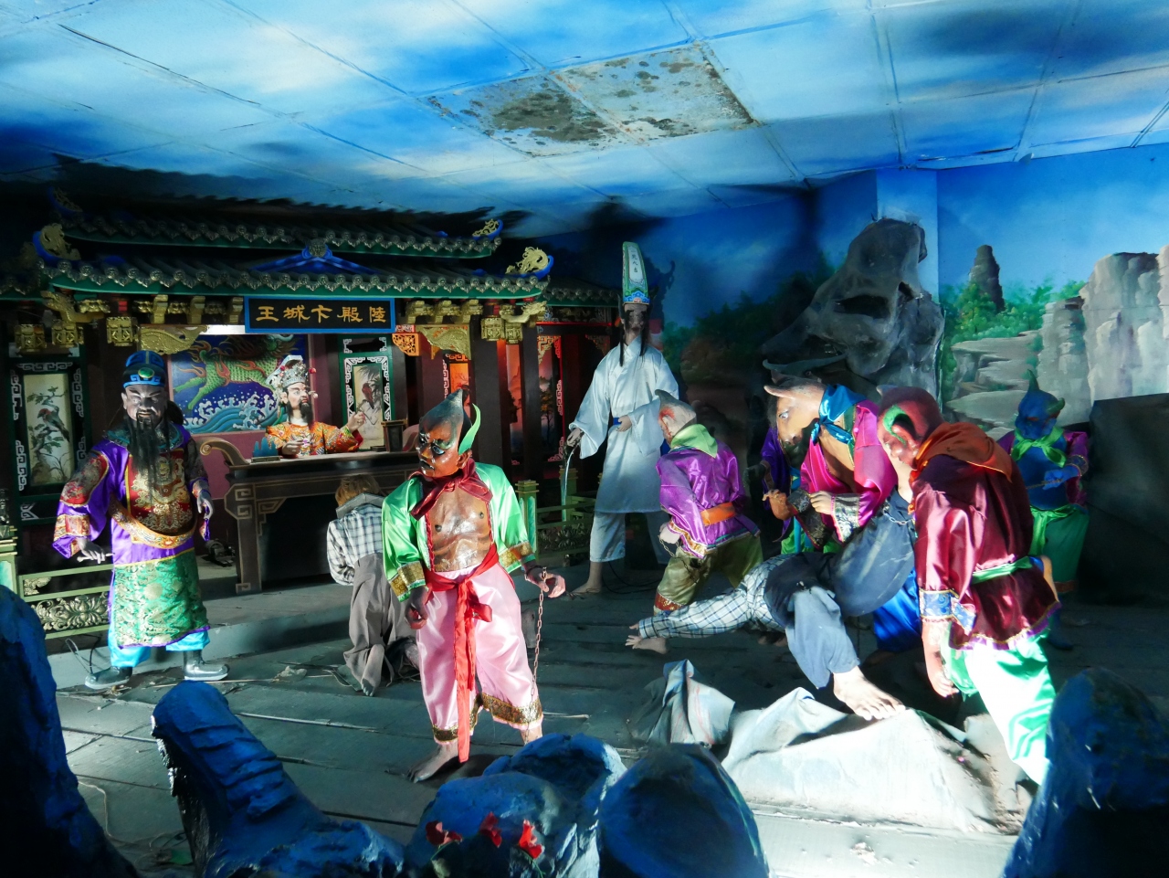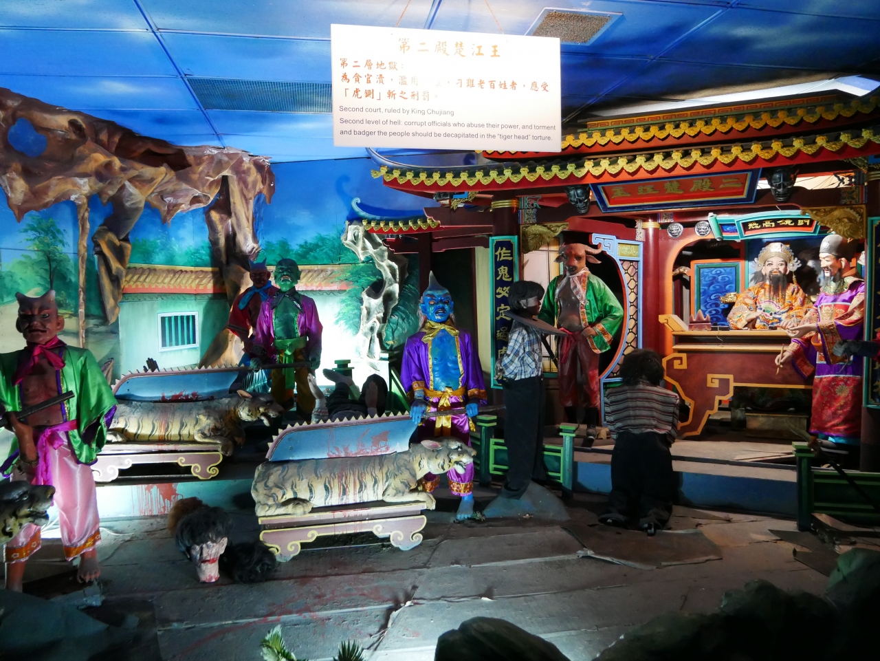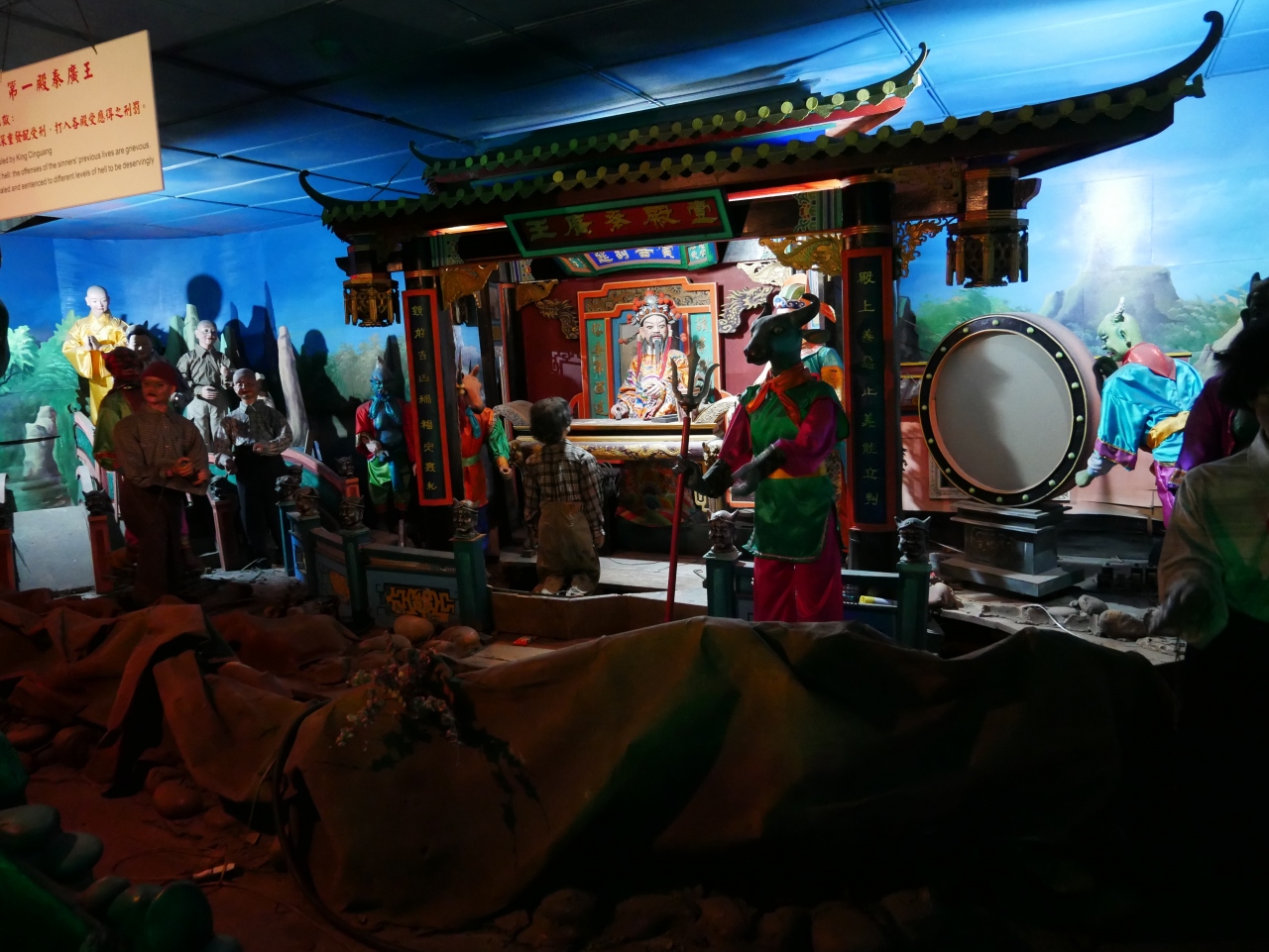 立派なお寺ですが、それよりも地獄めぐりと天国めぐりが面白い。まず、地獄めぐりは、18の地獄を巡るんですが、ちょっとしたお化け屋敷風、天国めぐりは、天国というより天女さまと神仙の世界みたいな感じでした。