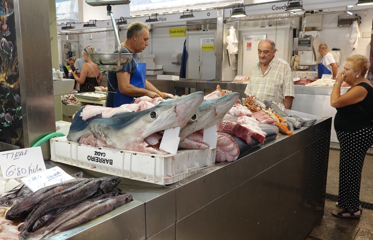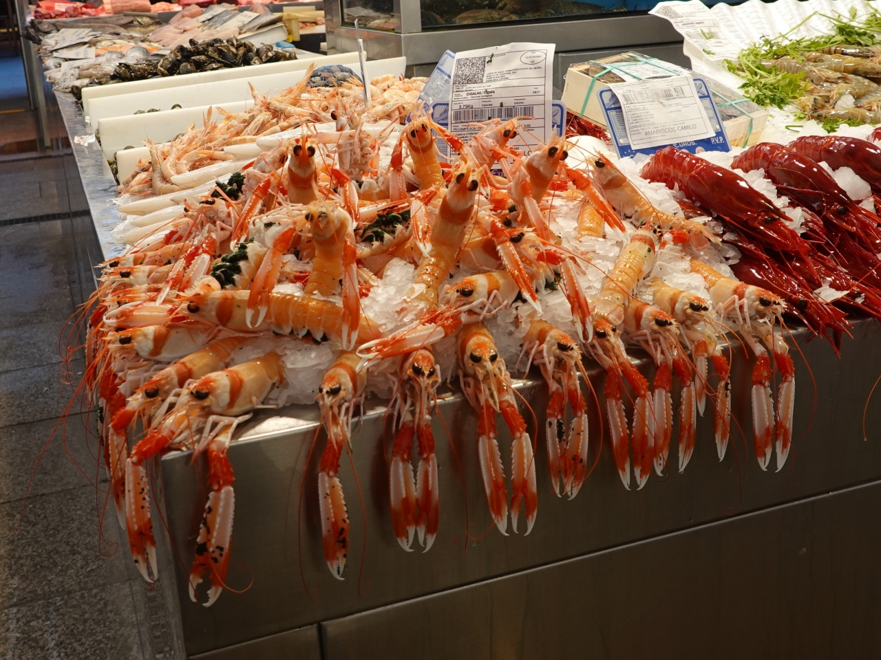 カディス大聖堂よりも奥に進んだ先にあります。いろいろな物が売られていますが、場所柄、海産物が多かったです。新鮮そうな魚やエビが山のように積まれています。午前11時頃に行きましたが、まだ周辺の飲食店も開店前で、市場は閑散としていました。