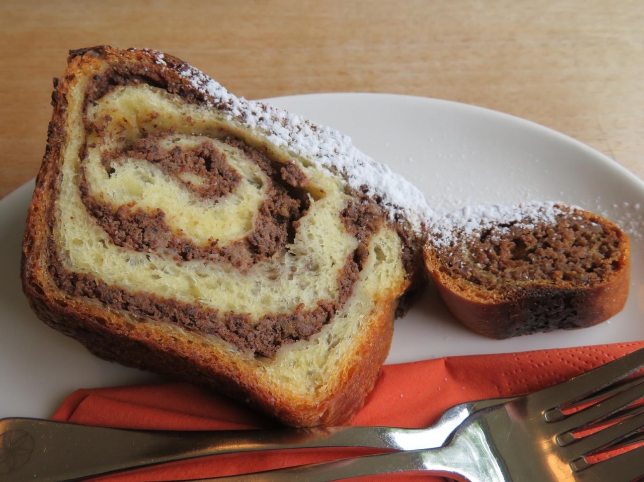 - 名物のポティツァは、元々そうなのか、今風に甘さをグッと抑えたレシピになっているのか、お菓子にしては甘味がずいぶん少ない感じでした。