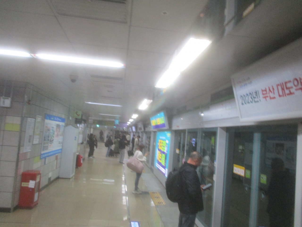 地下鉄の各駅にはガラス張りの安全柵が設置され安全に配慮されています。時刻表はありませんが、東京、大阪のように事故による遅延はなく、また、釜山滞在中に経験したことがありませんでした。日本の鉄道会社も見習って欲しいものです。
