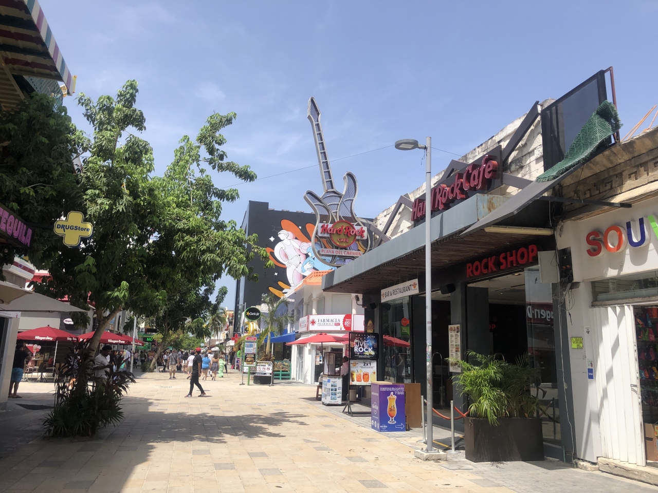 プラヤデルカーメンの一番の繁華街のような通りで、観光客相手のお土産屋さんやローカルがいく屋台のようなお店、バーやレストランなどが並んでいます。