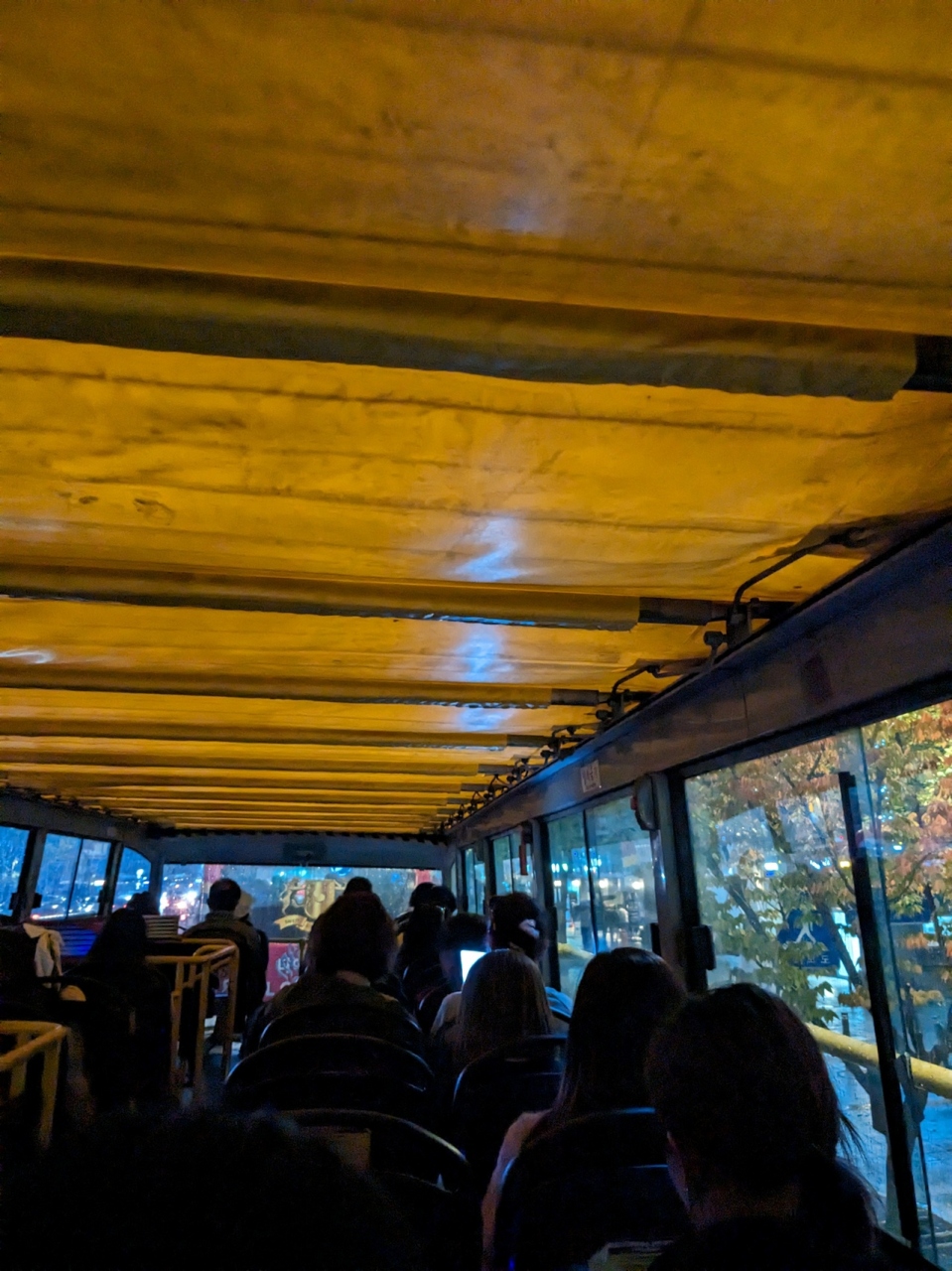 昼間は、ツアーバス券で一日乗り降り自由でソウルを回りますが、夜景ツアーは、90分車窓から夜景を見るだけだけど、Nソウルタワーに30分フォトタイムがあるのが、目玉ですね。見応えあります。ただ集合時間厳守ですが、乗り遅れると発車します。スタート乗車は、30分より前にもう座席埋まってました。右側の席が、車窓風景がみえるからオススメです。運悪く雨だったので、屋根付きになり、空からの風景見れなくて残念でした。タワーのときは晴れていたから良かったけど。