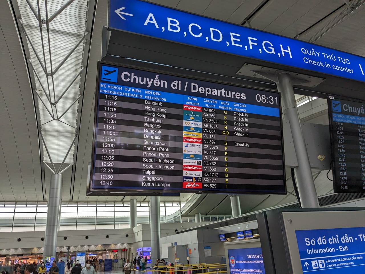 ベトナム南部の大きな空港で、数多くの航空会社が乗り入れしています。そのため乗り継ぎで利用する人も少なくありません。