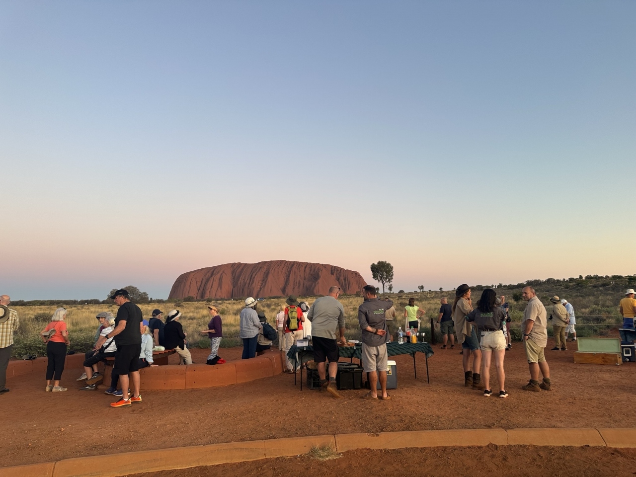 ウルルが最も美しく見えるのが、サンライズとサンセットのときで、赤茶色に輝きます。エアーズロックリゾートからは、ホップオンホップオフトいう個人が利用できるバスがあり、このバスがサンセットの時間にあわせて出発します。サンセットのビュースポットに日没の1時間ほど前に着き、そこの駐車場に日没の15分後くらいまで停車しています。サンセットが見られる現地ツアーもありますが、マイペースで気ままにサンセットを見たい人にお薦めです。