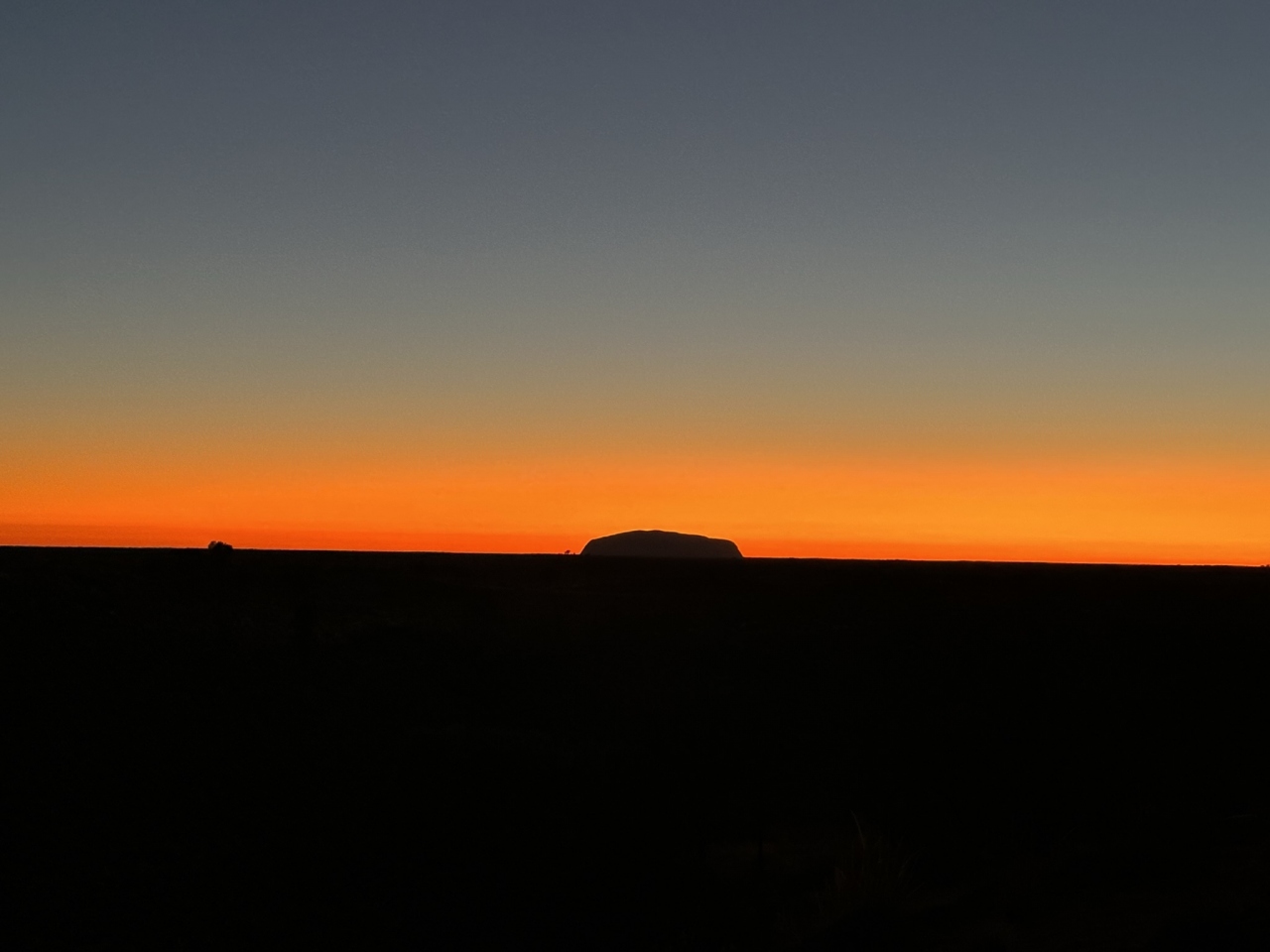 展望スポットからは、ウルルの隣りの遠くにカタジュタも見え、朝日を浴びて両方が赤く輝きだす様子が見られました。